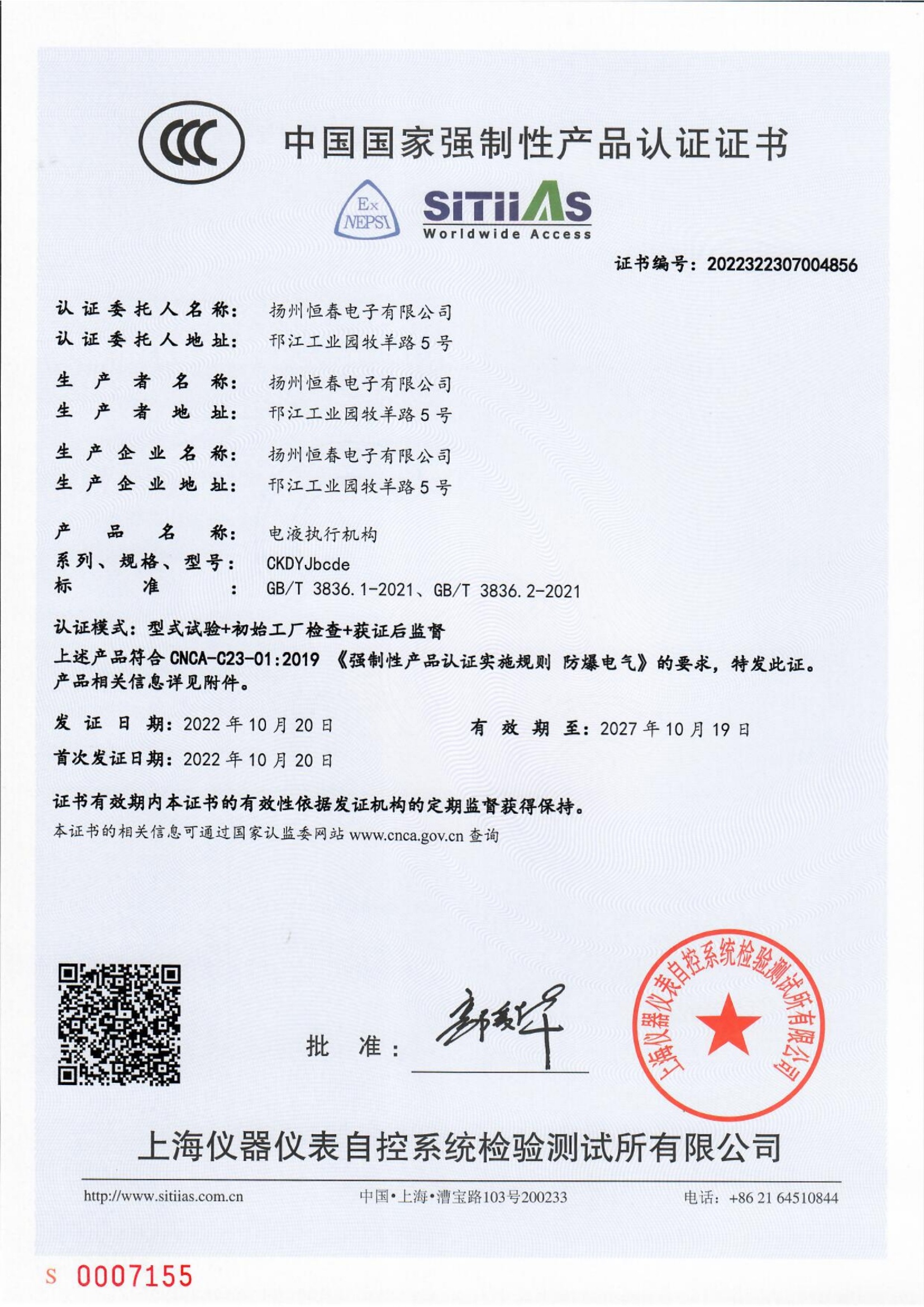 CKDYJ CCC证书 CT4