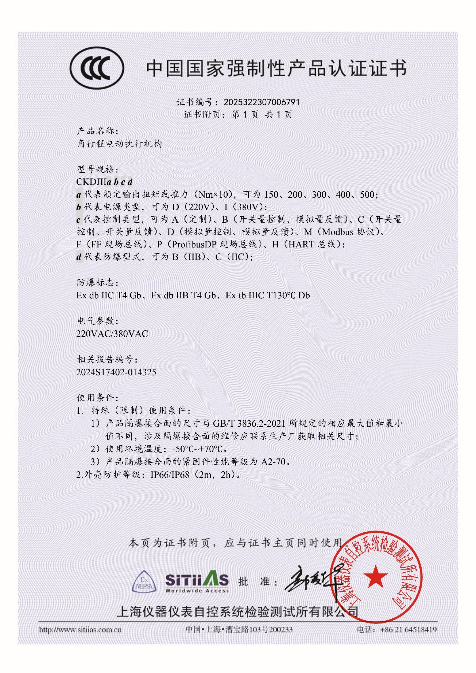CNEx22.2211X 防爆合格证