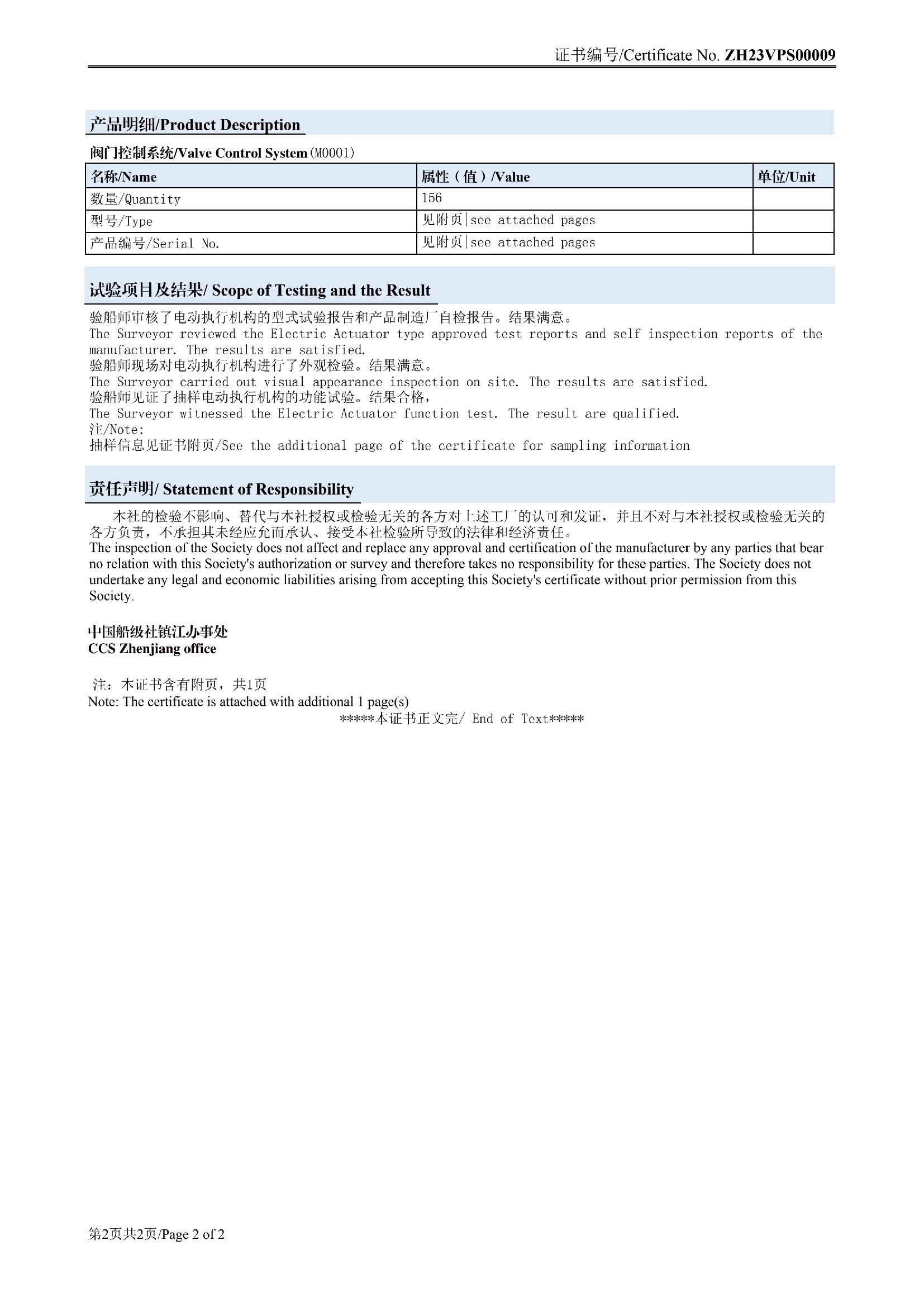 电液船级社检验证书