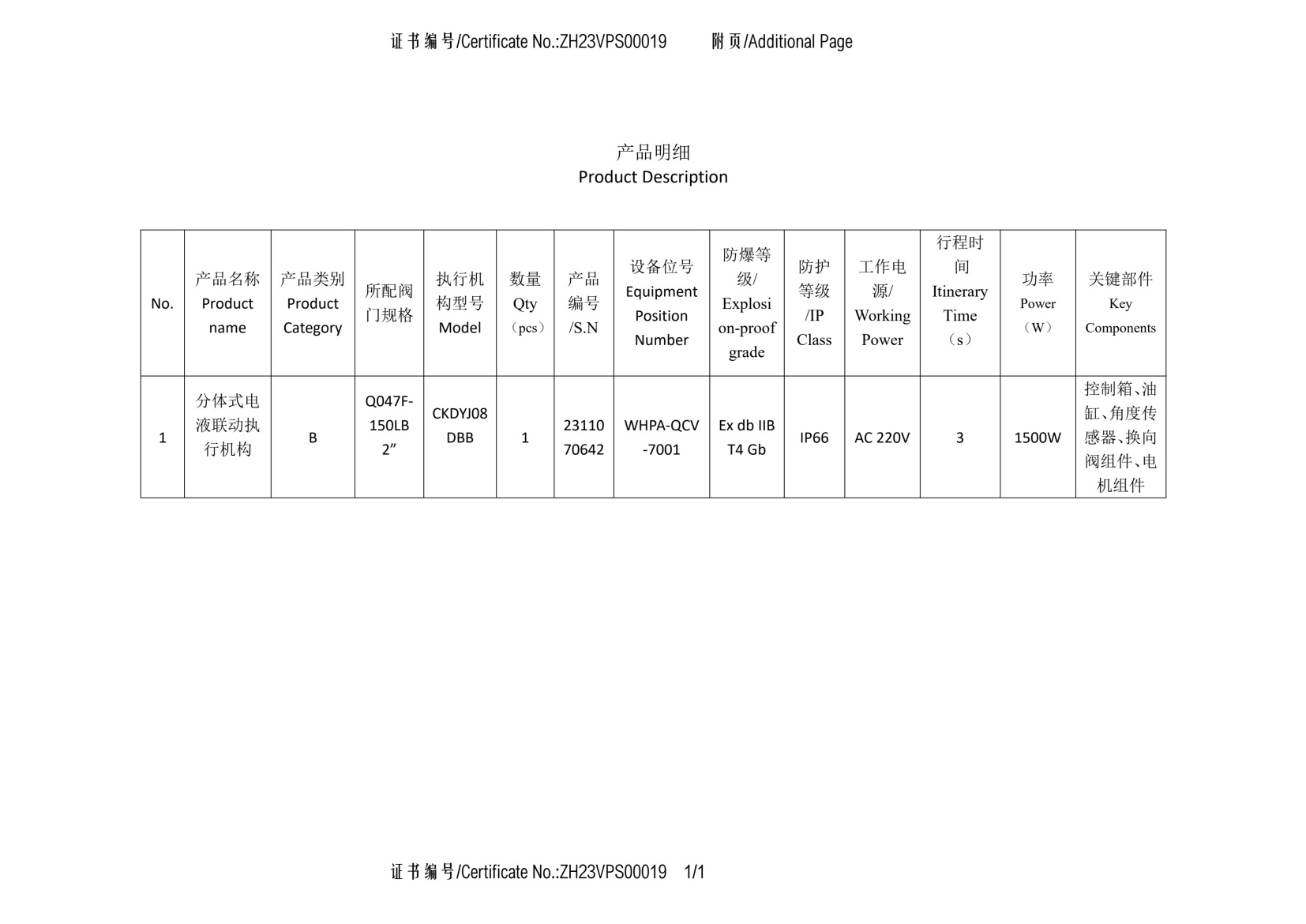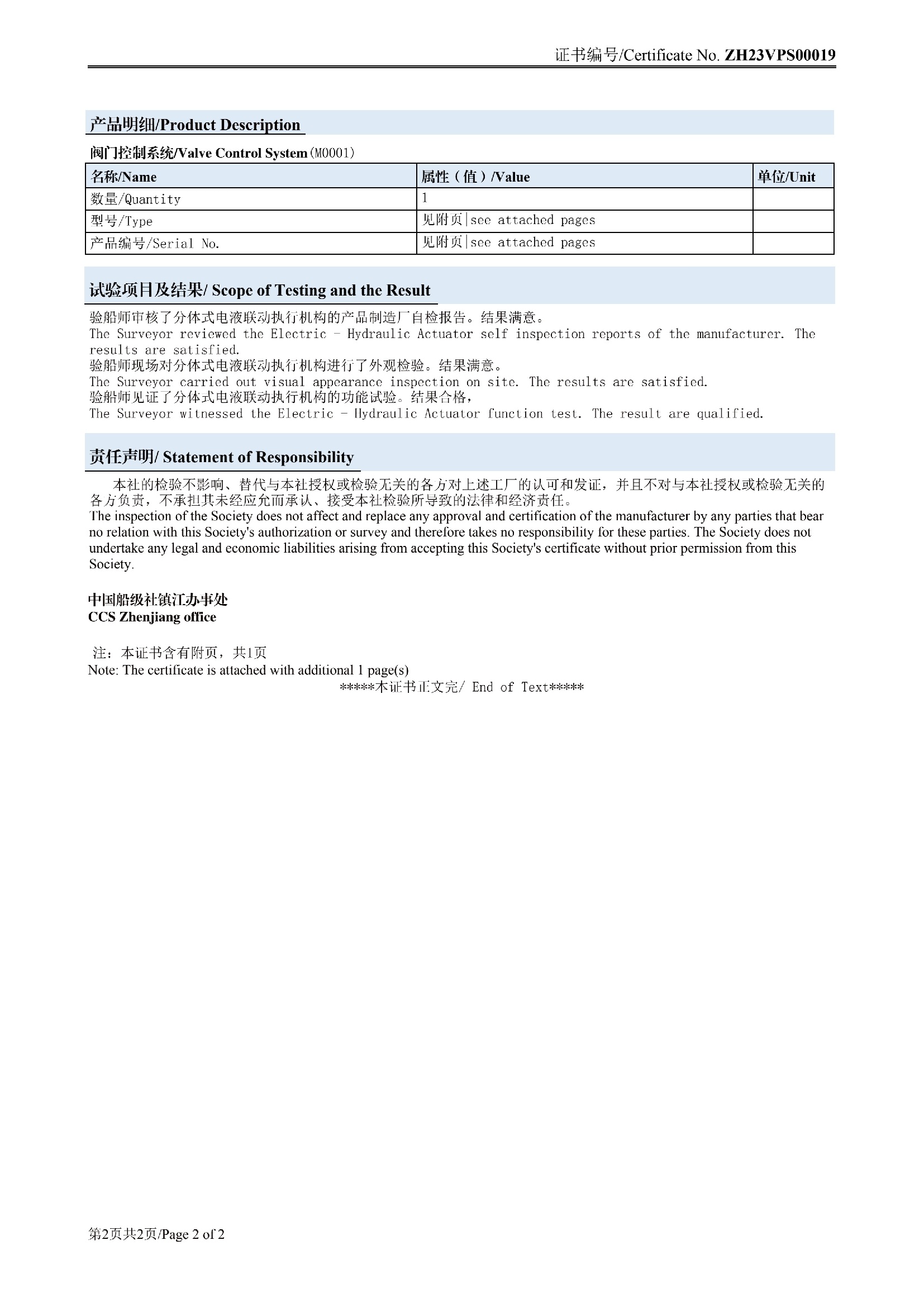 电液船级社检验证书