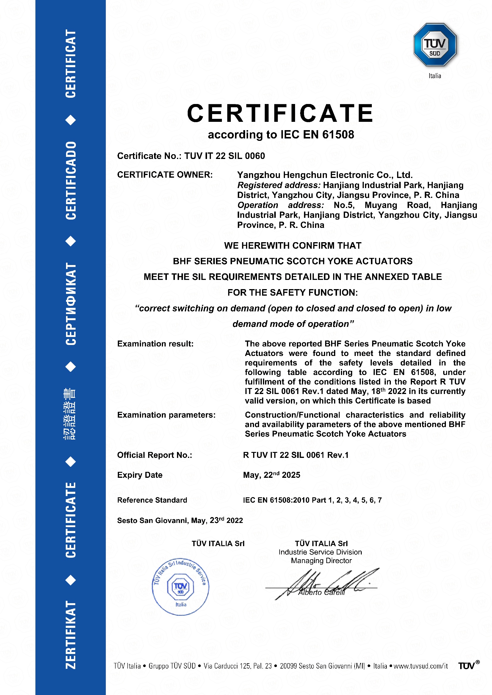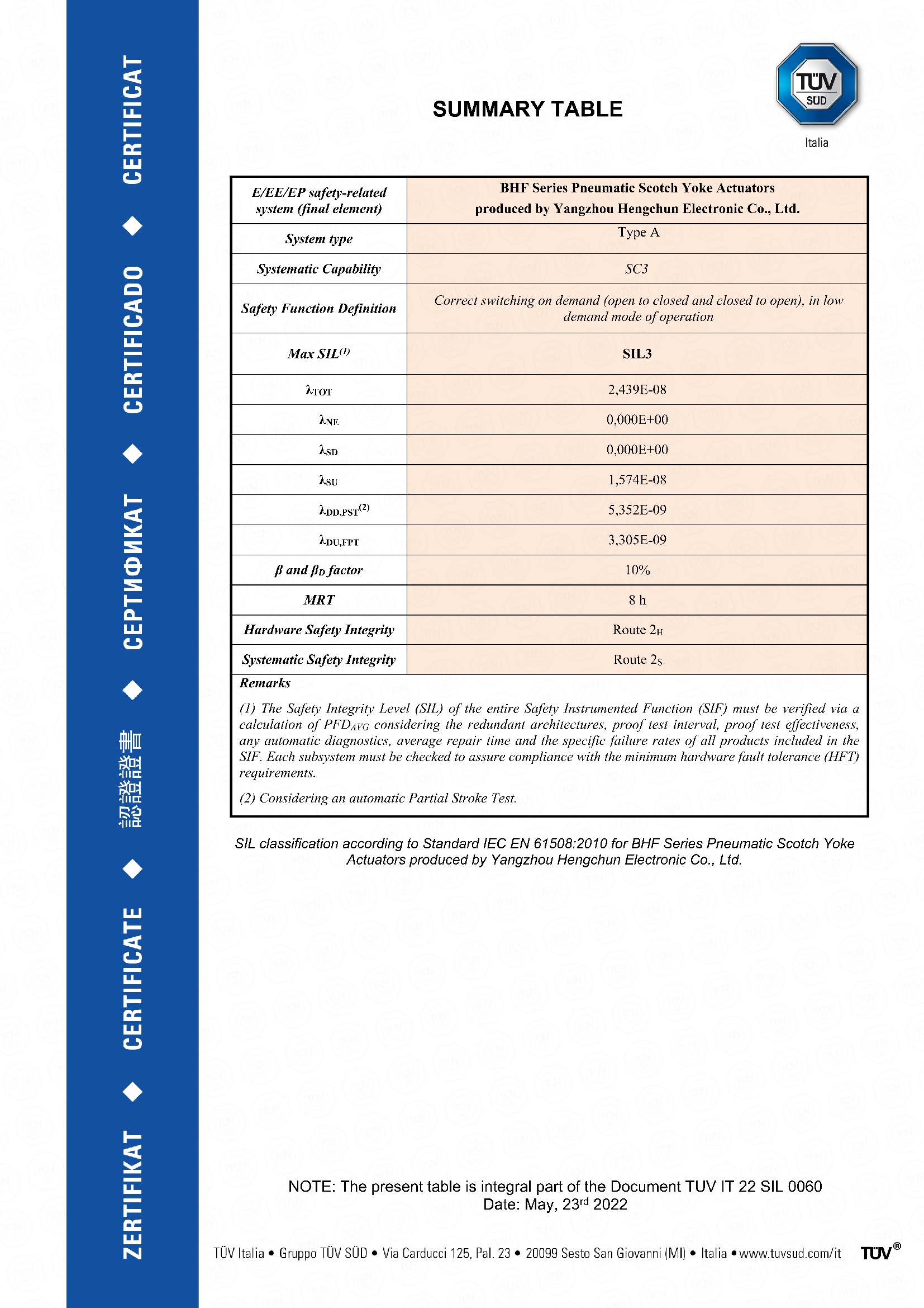 TUV IT 22 SIL 0060-BHF