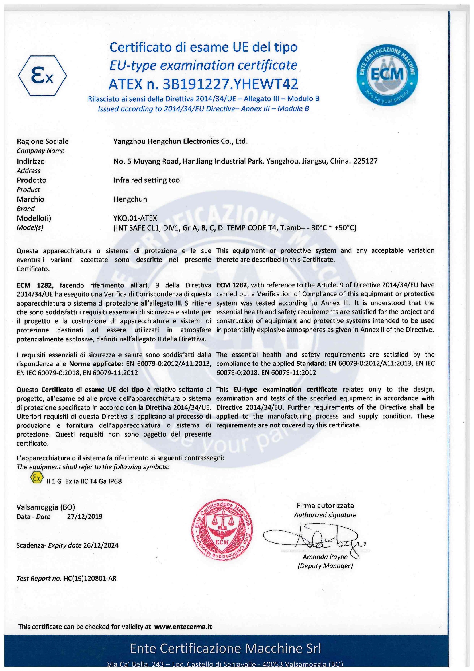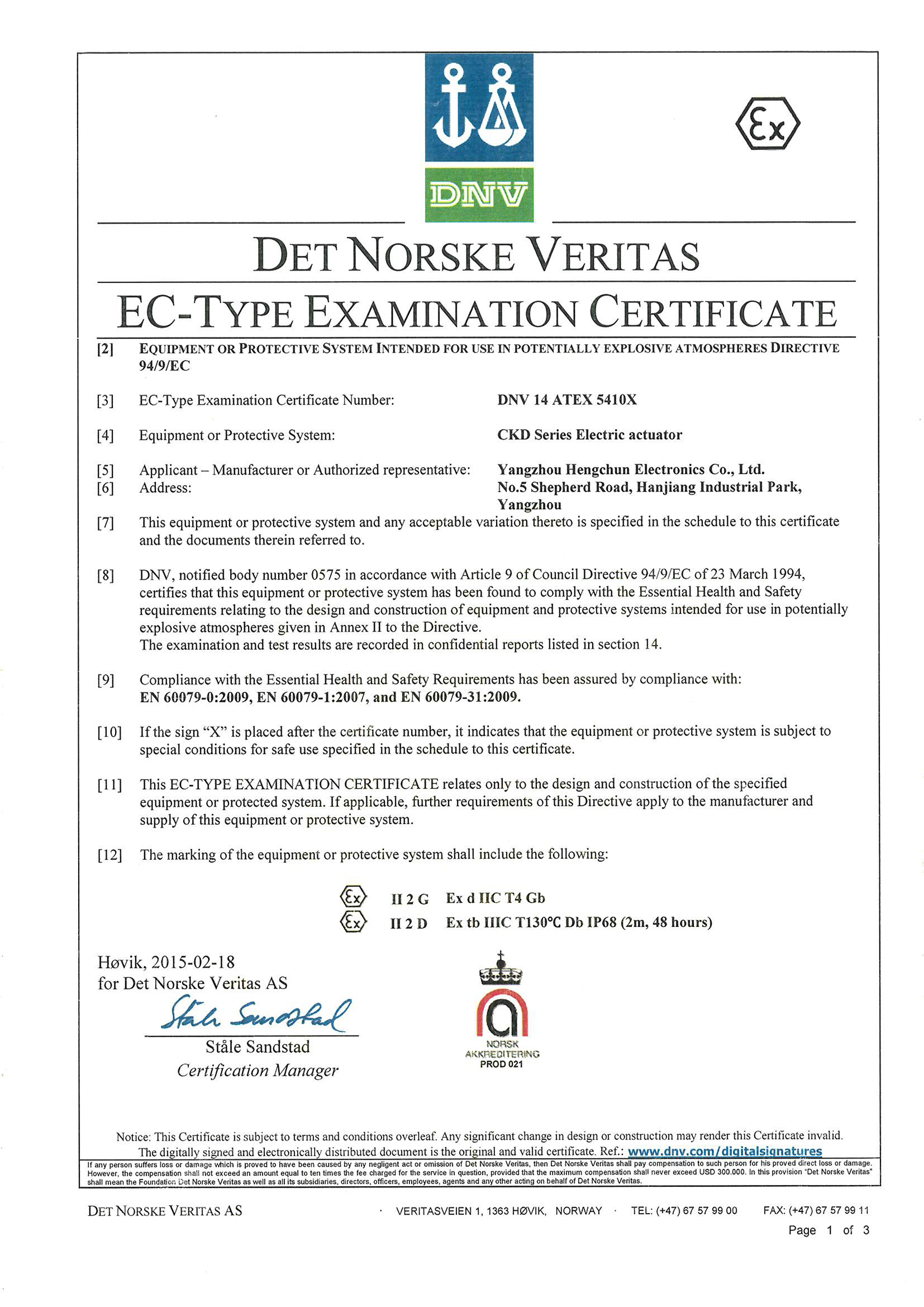 ATEX型式认可证