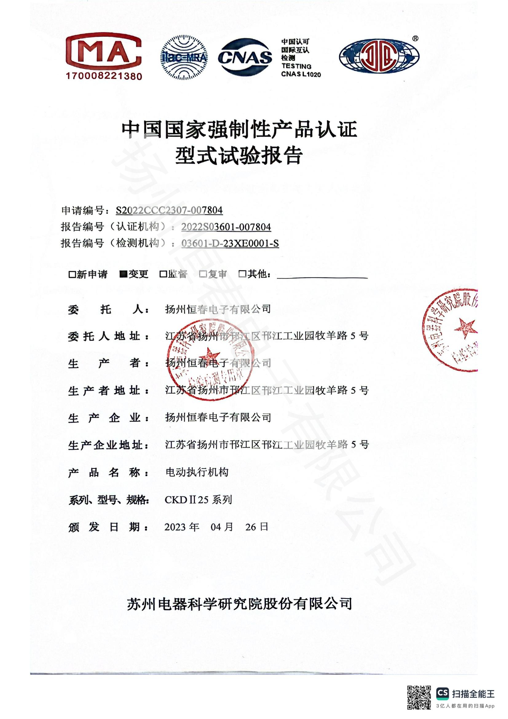 2022S03601-007804 CKDII25 型式试验报告