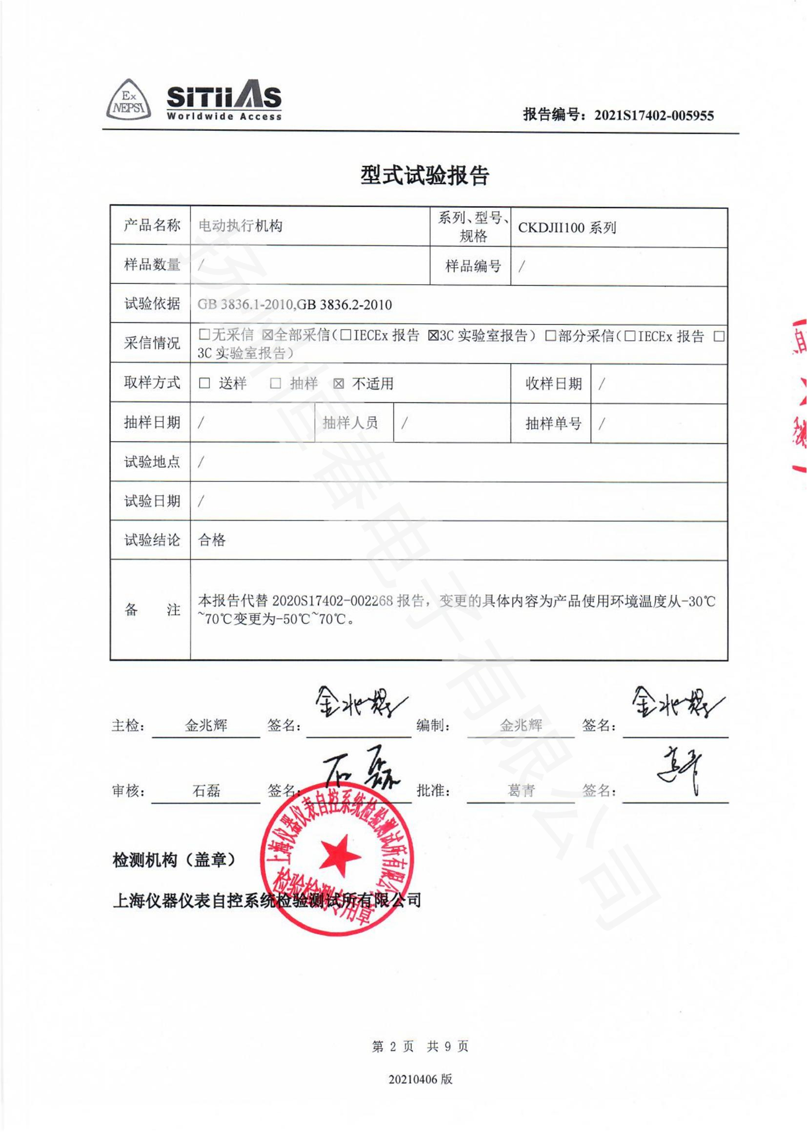 2021S17402-005955 CKDJII100 -50~70型式试验报告