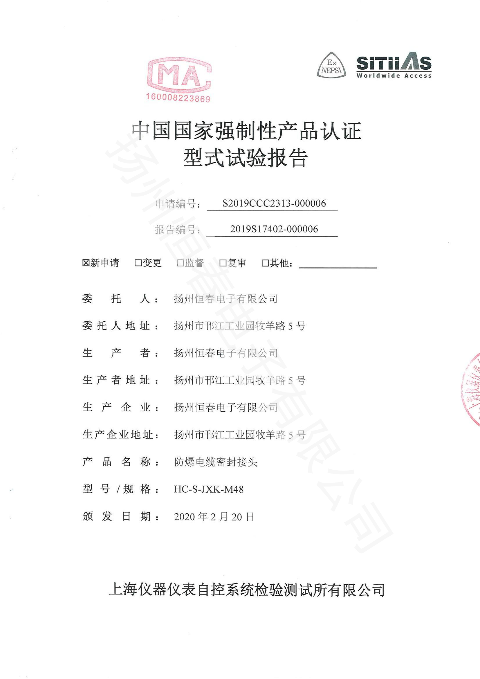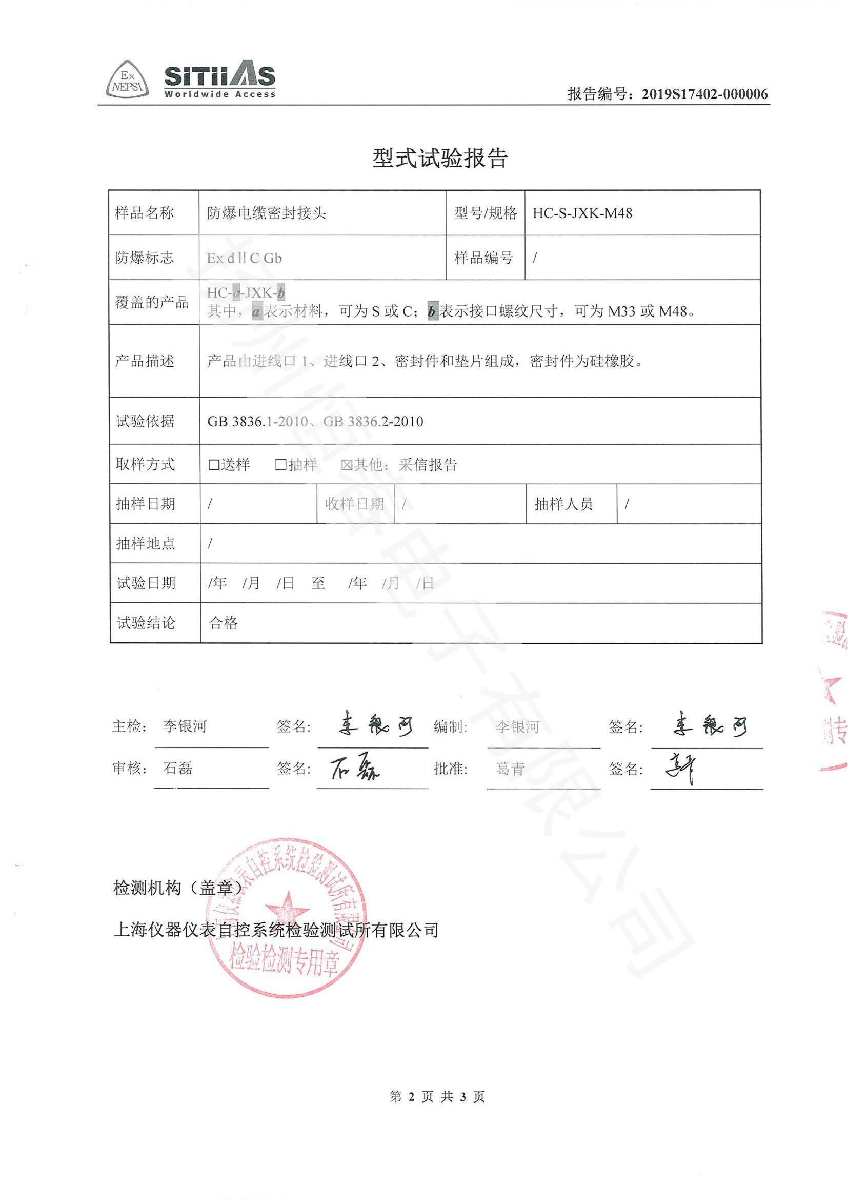 2019S17402-000006 防爆电缆密封接头型式试验报告