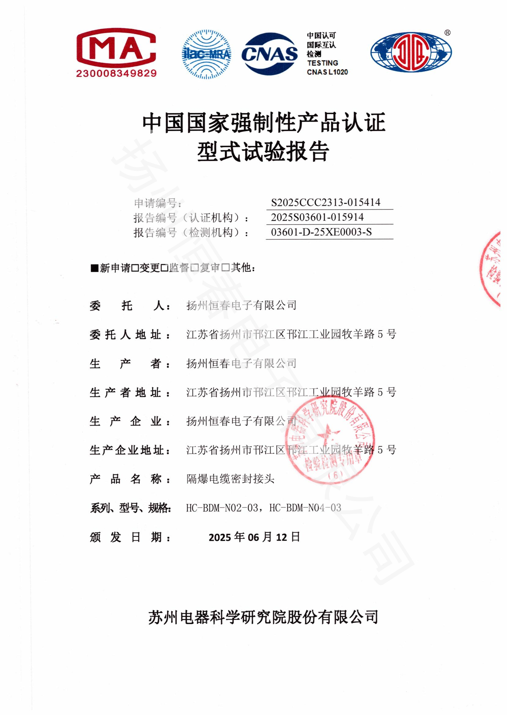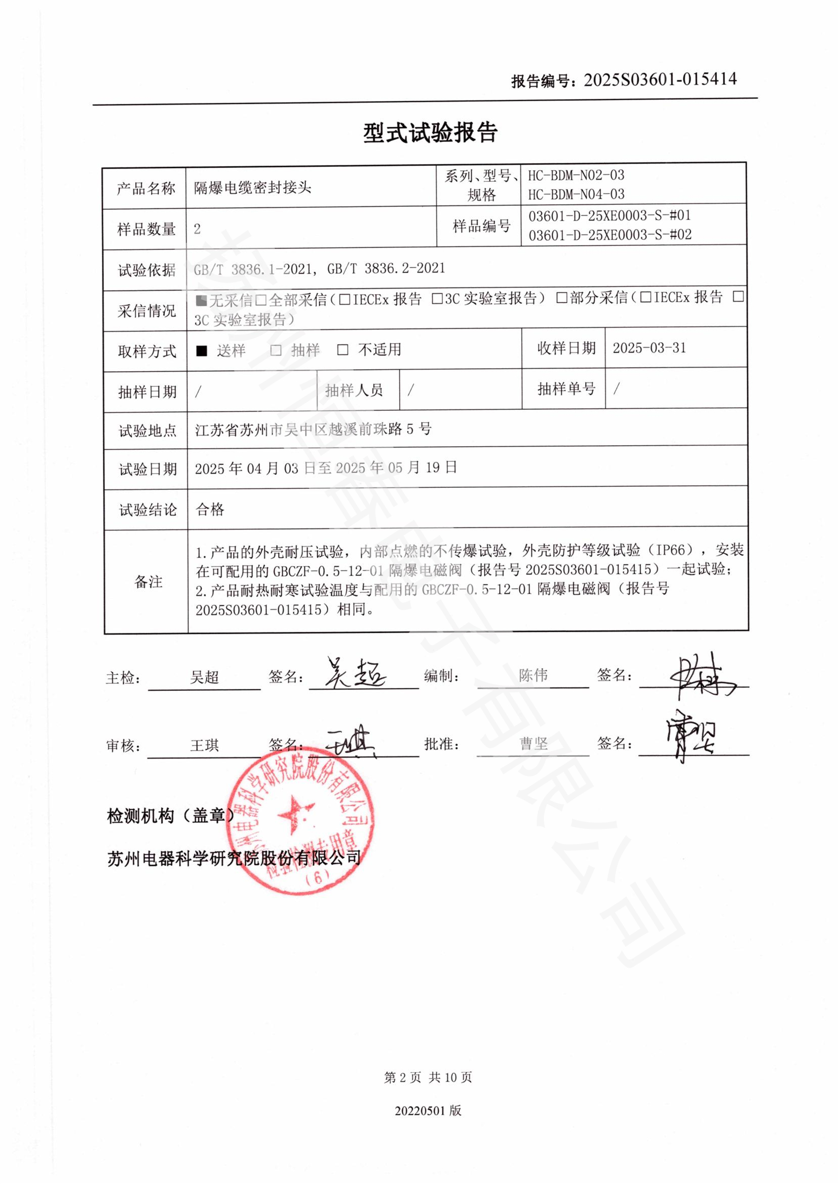 2025S03601-015914 防爆电缆密封接头报告