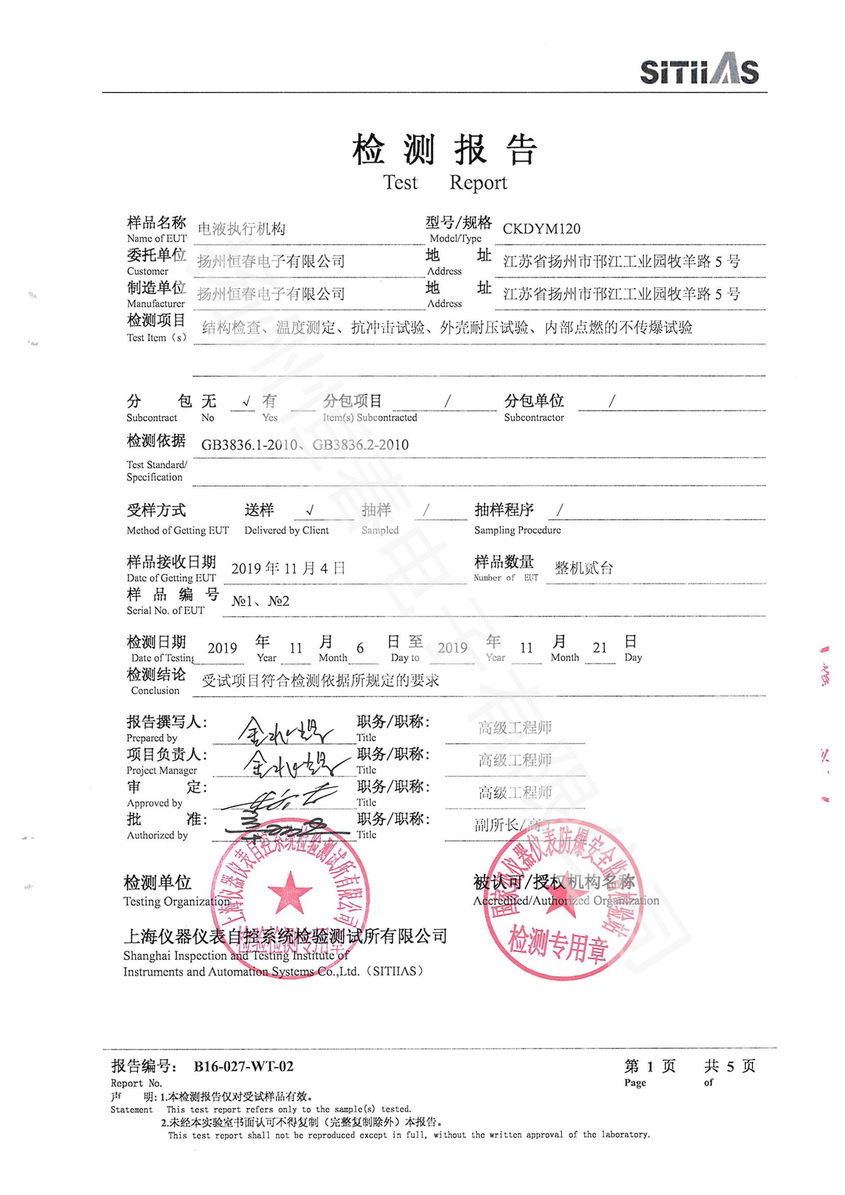 B16-775-WT 防爆电缆密封接头型式试验报告