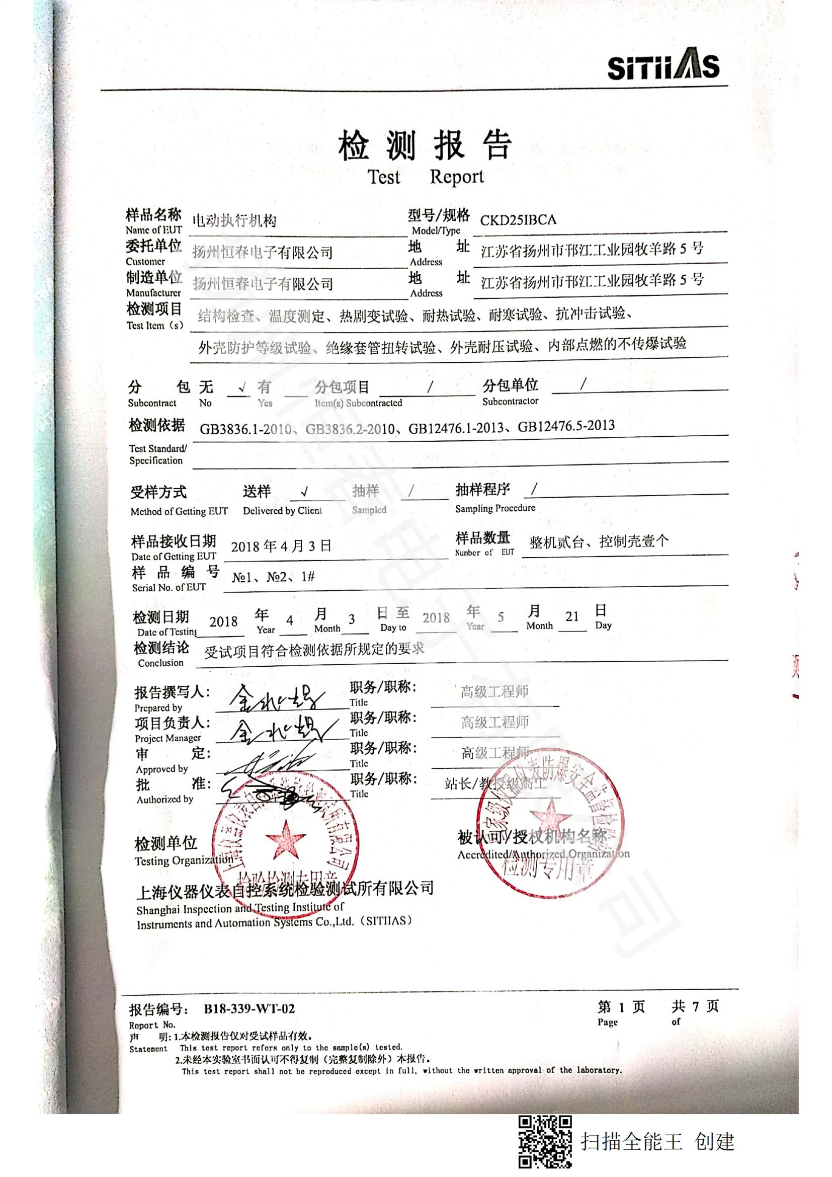 B18-339-WT-01 CKD16防爆检测报告