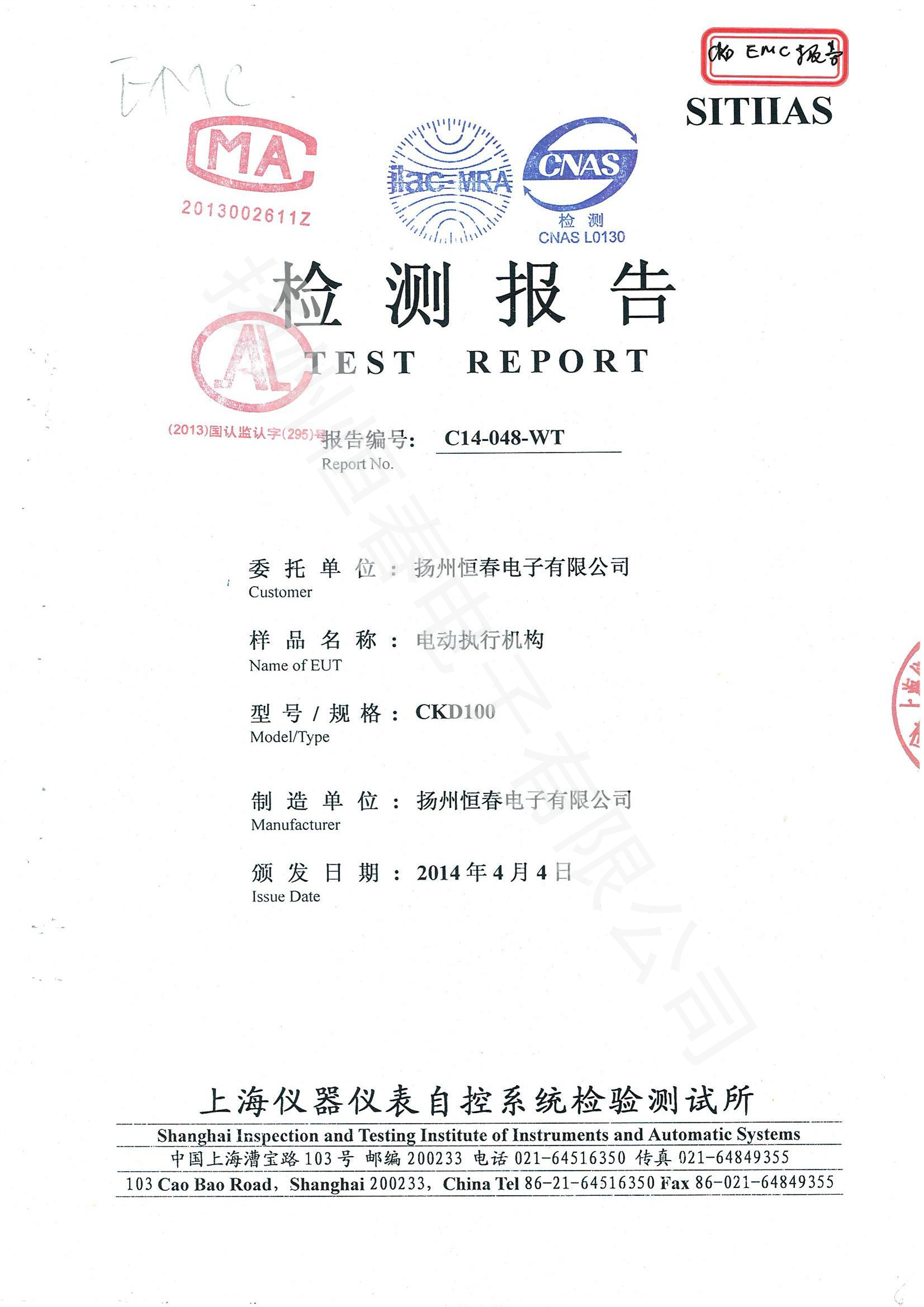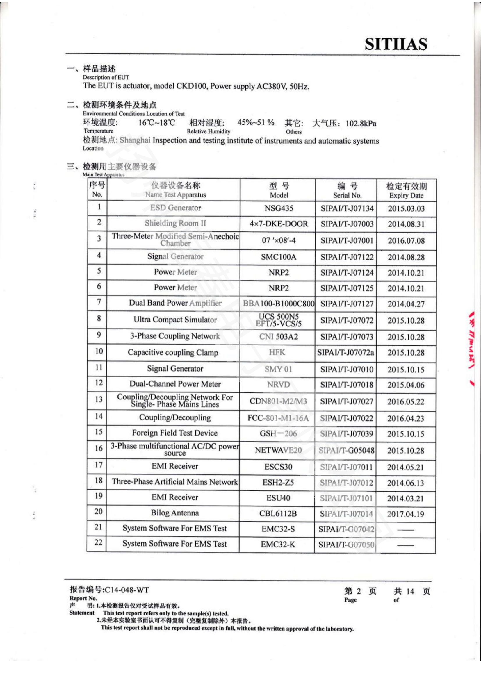 C14-048-WT EMC指令 检验报告 CE 英文