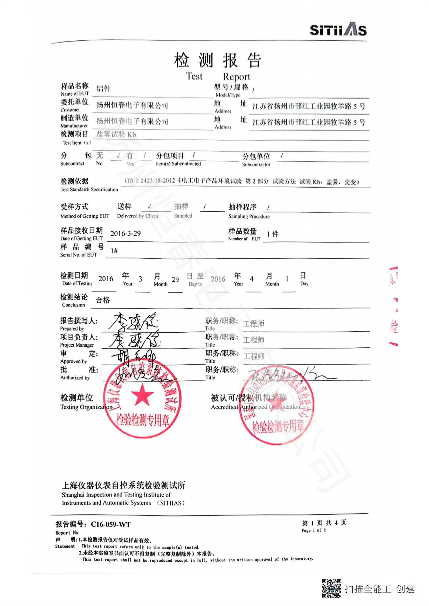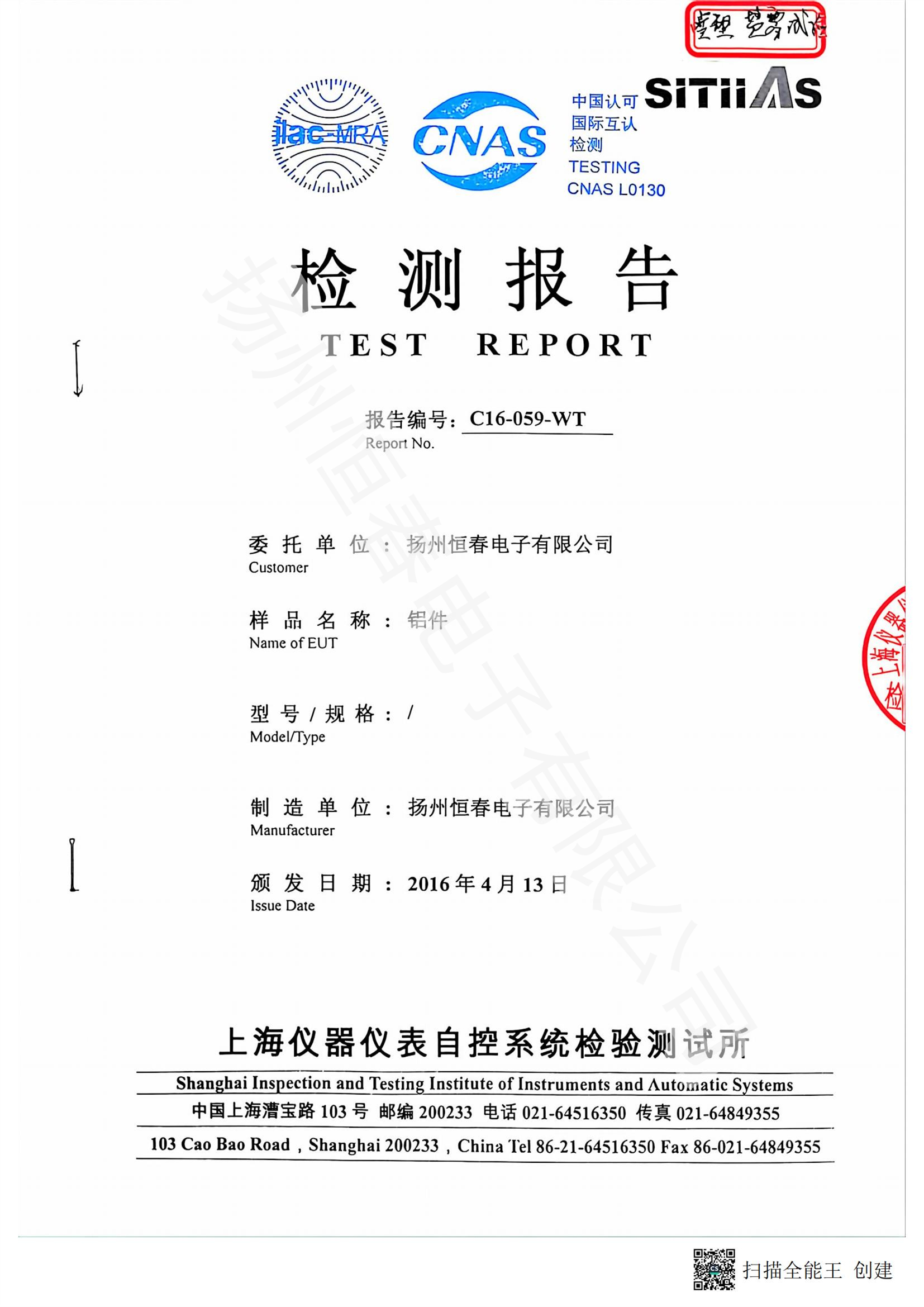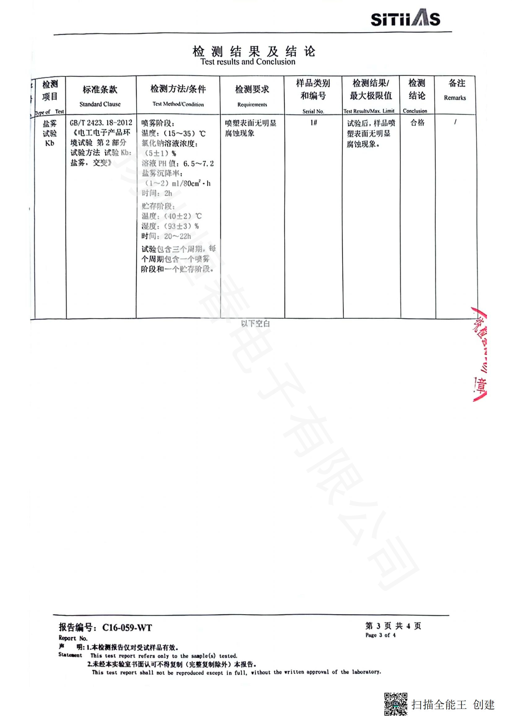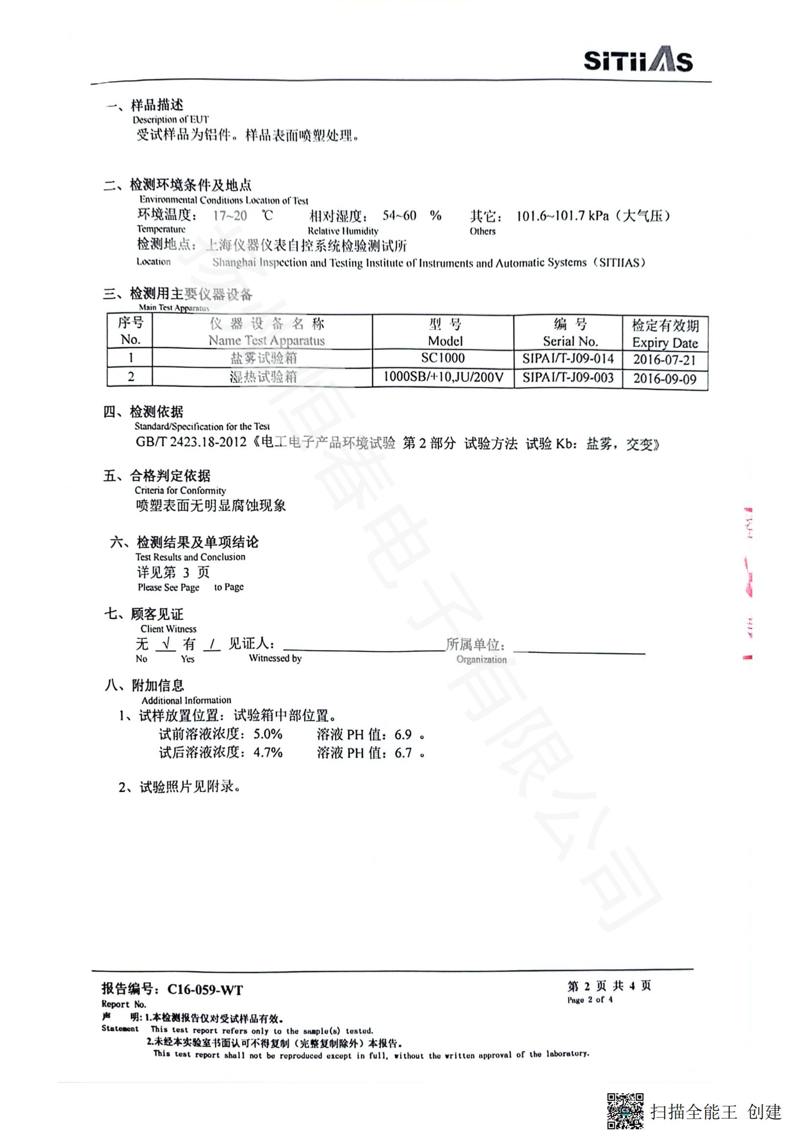 C16-059-WT 铝件喷塑盐雾试验