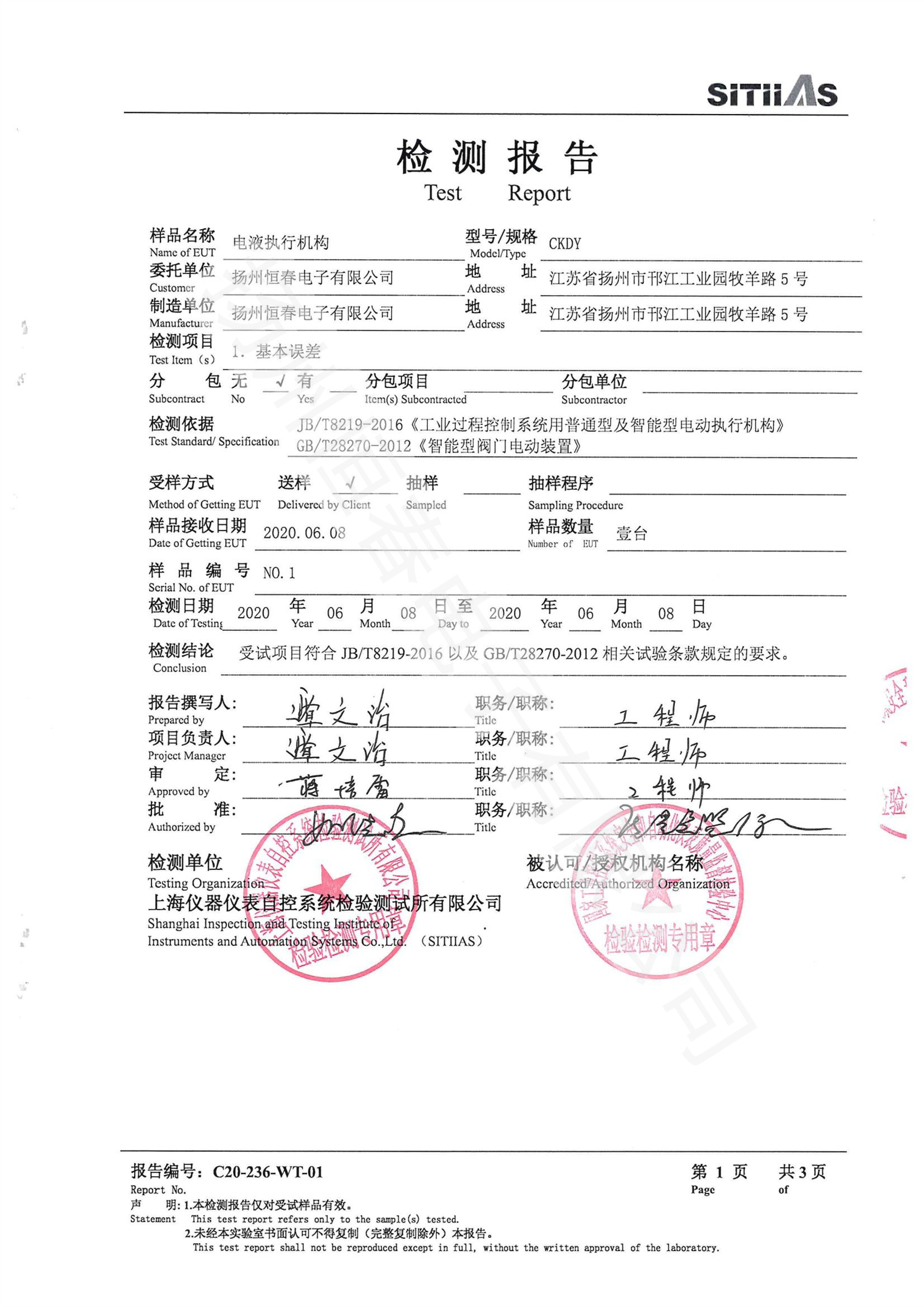 C20-236-WT-01电液CKDY执行机构(基本误差)