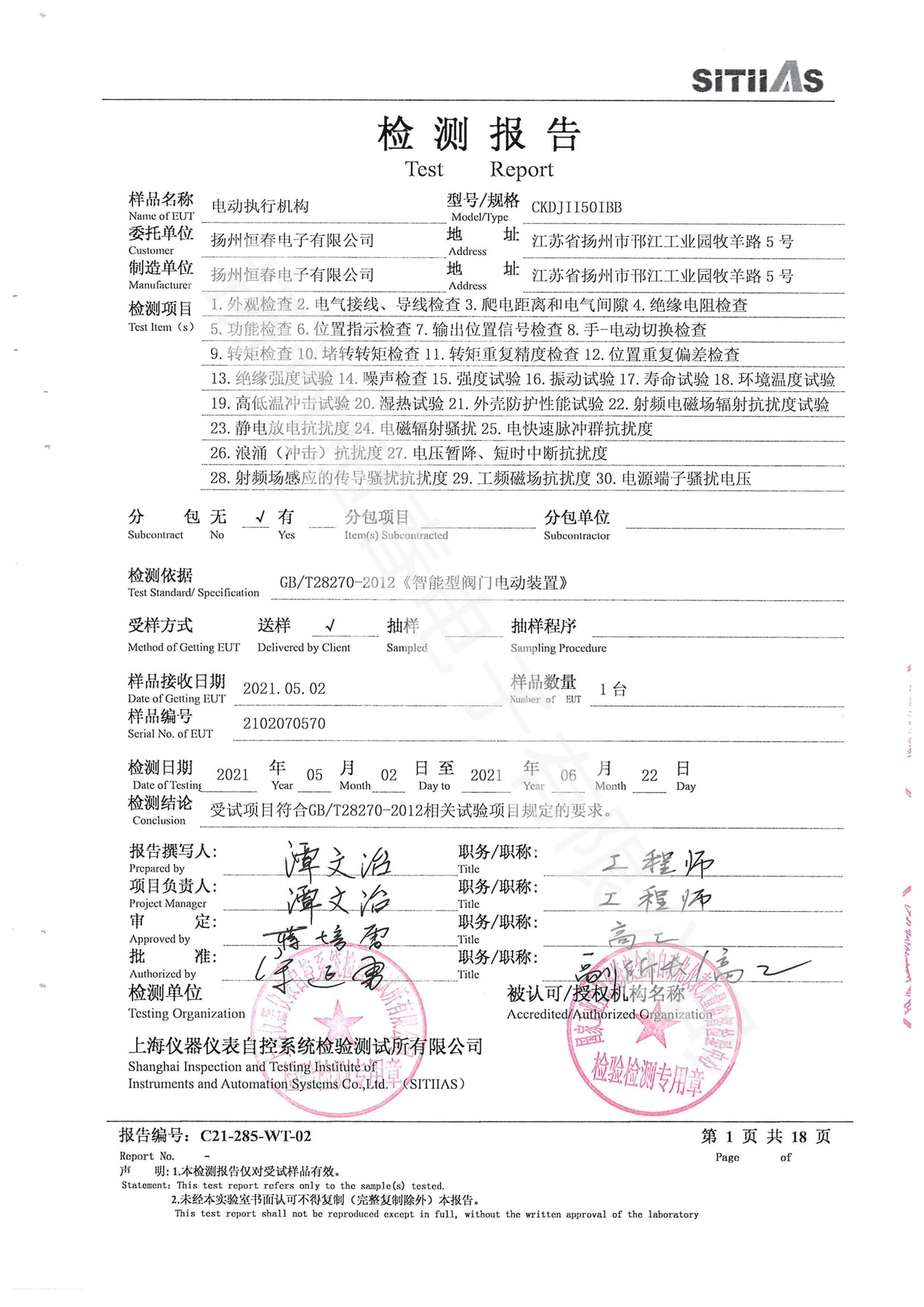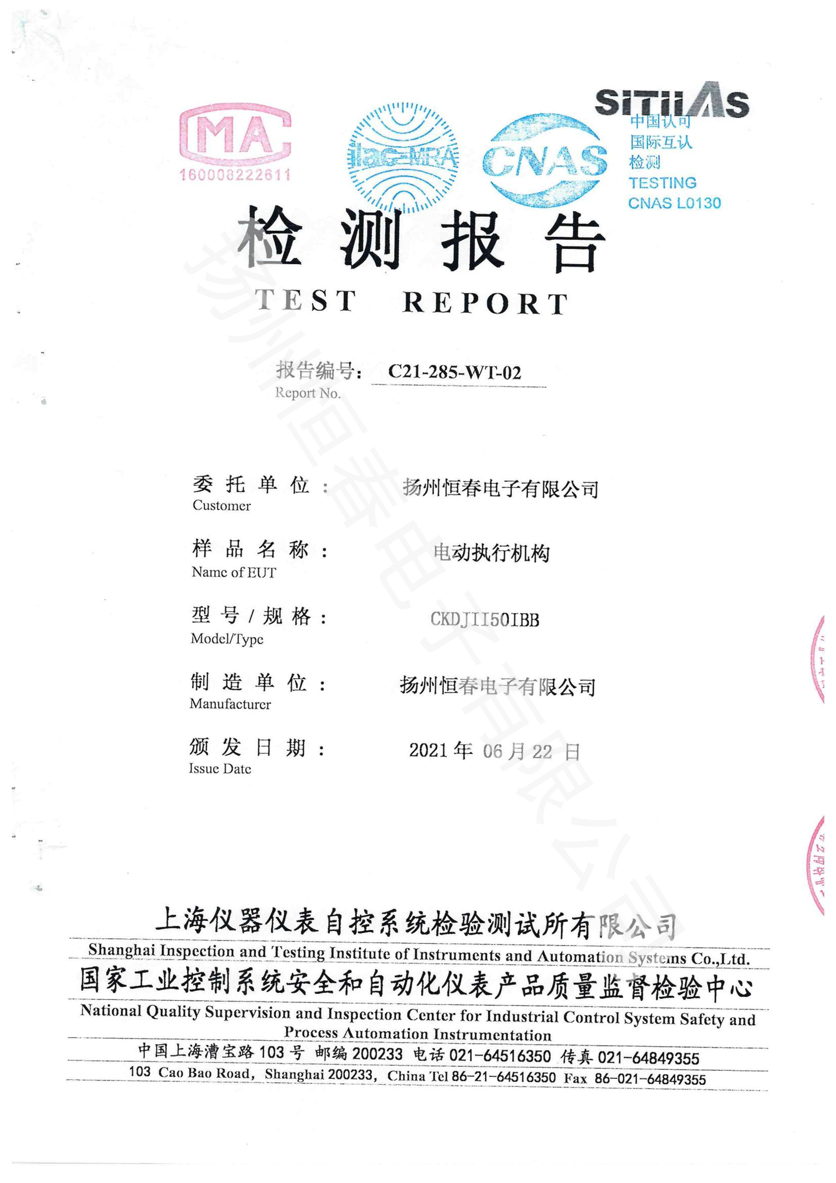 C21-285-WT-01 CKDJII20型式试验