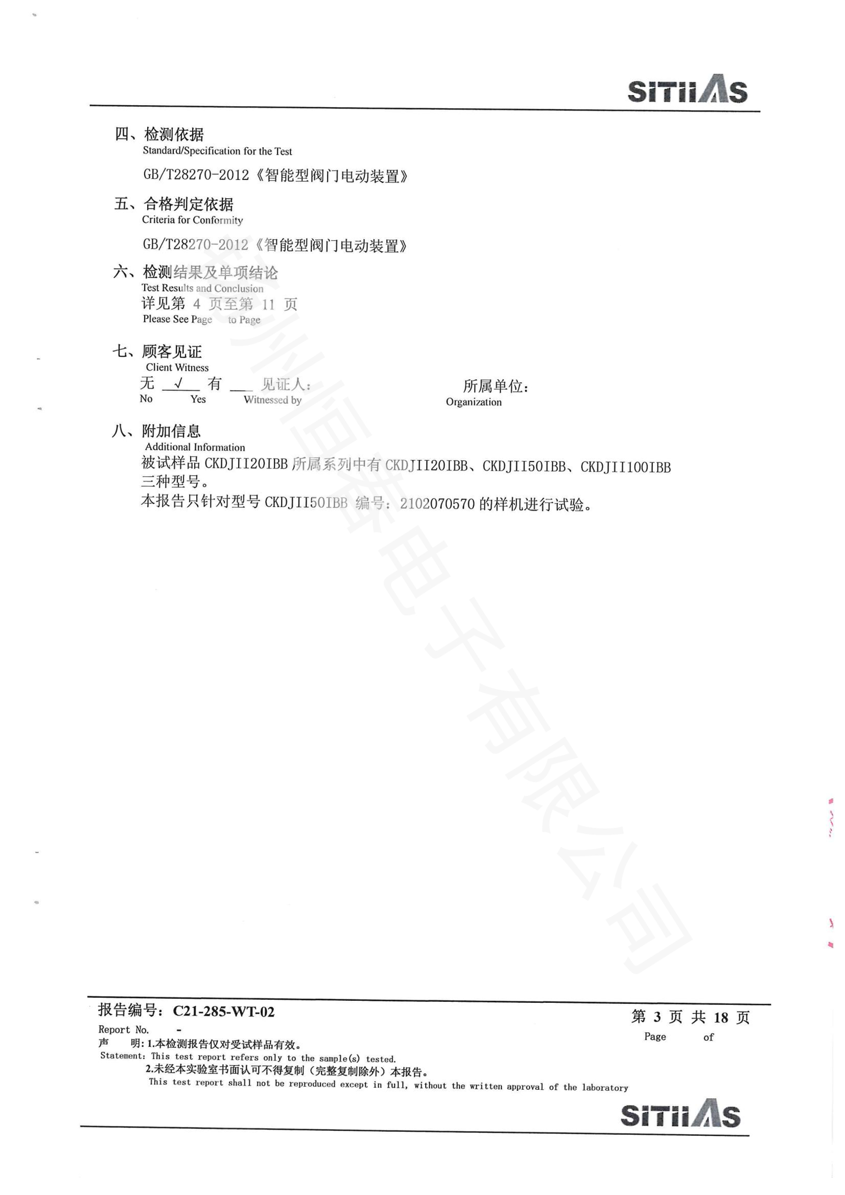 C21-285-WT-02 CKDJII50型式试验