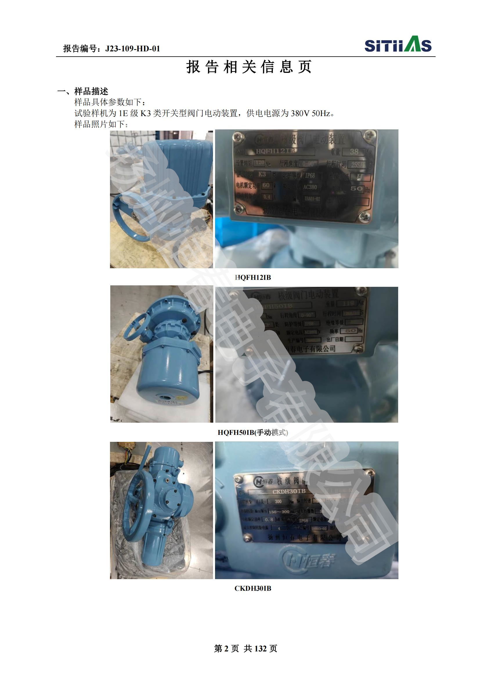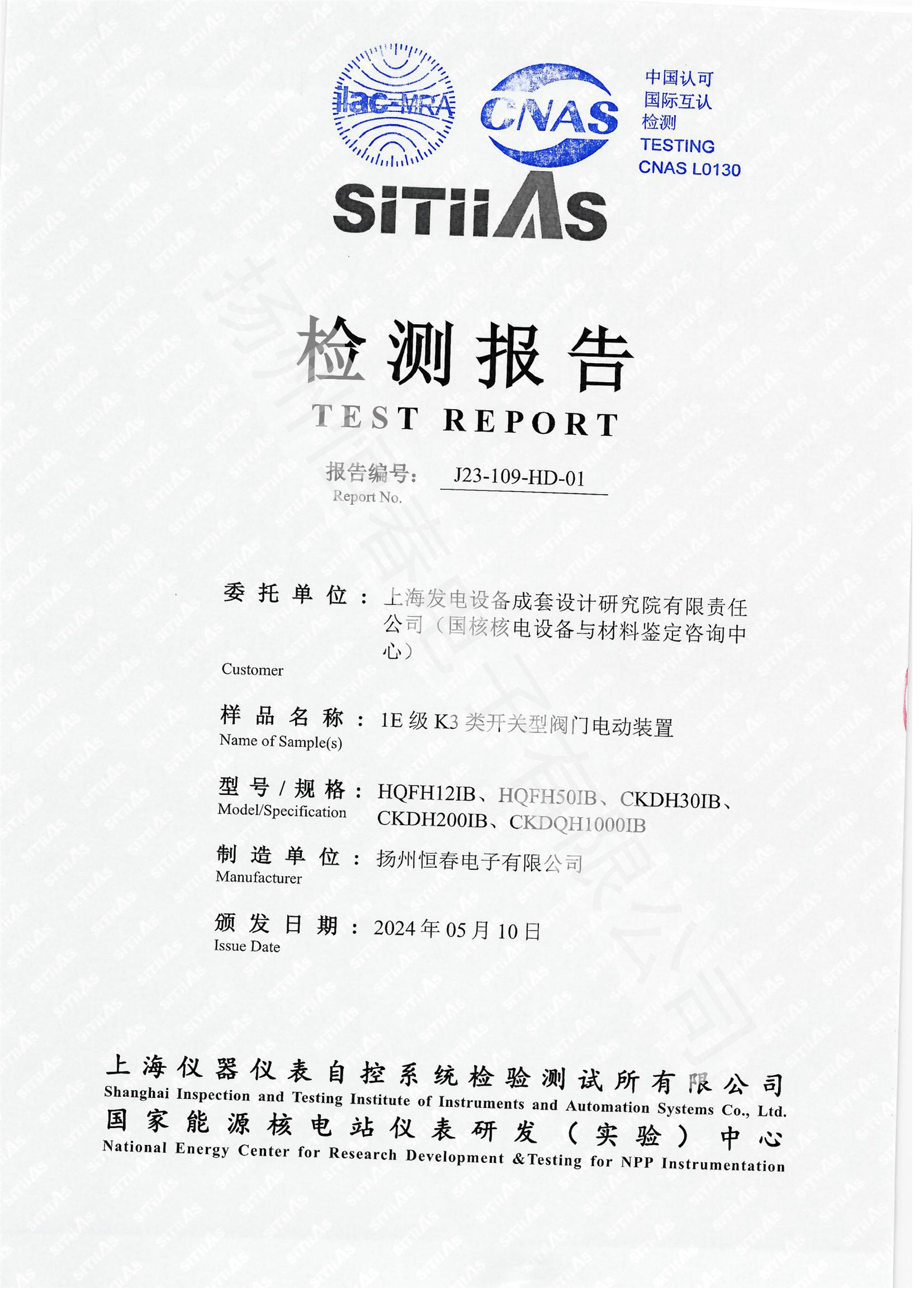 J23-109-HD-02 1E级K3类调节型阀门电动装置EMC试验报告