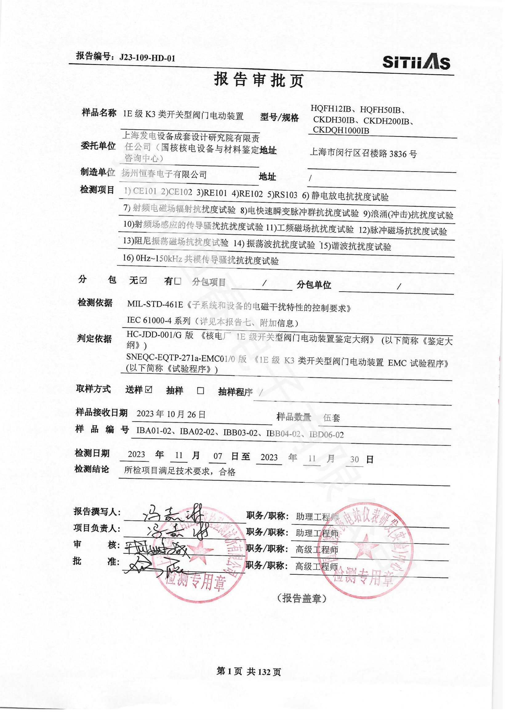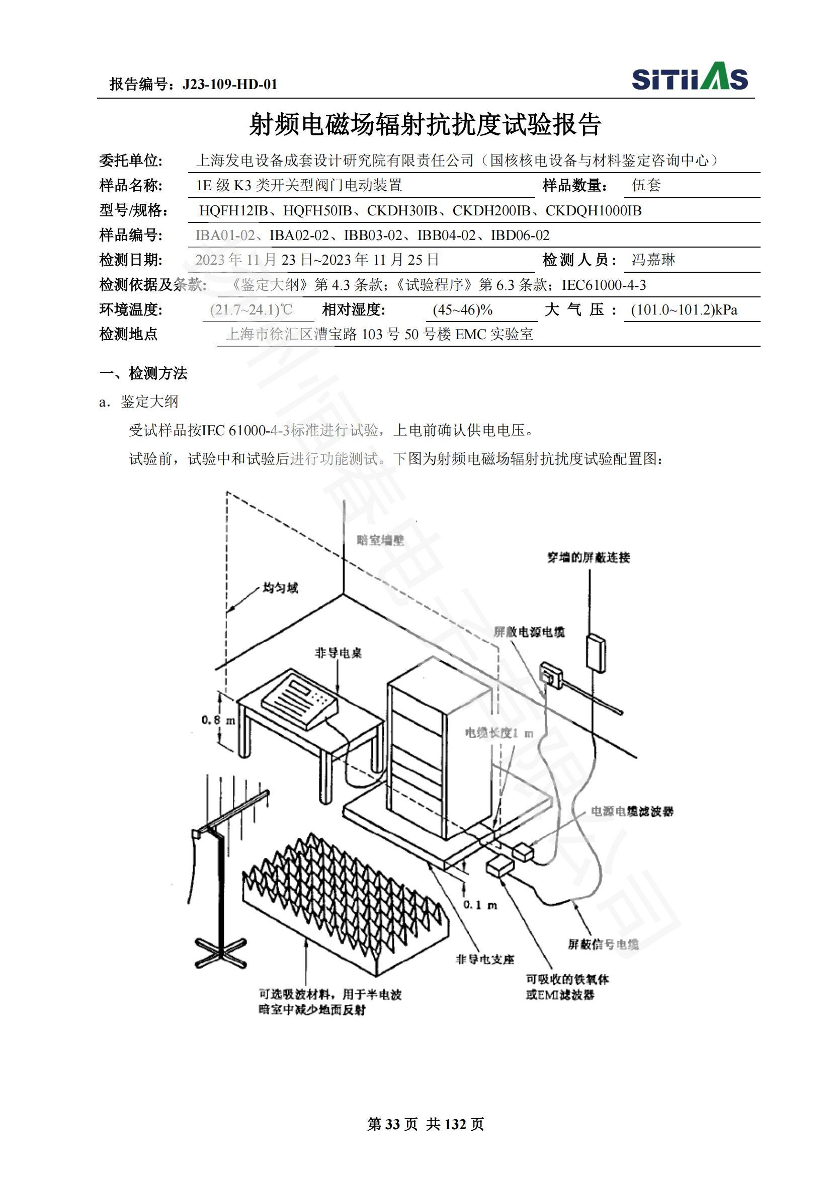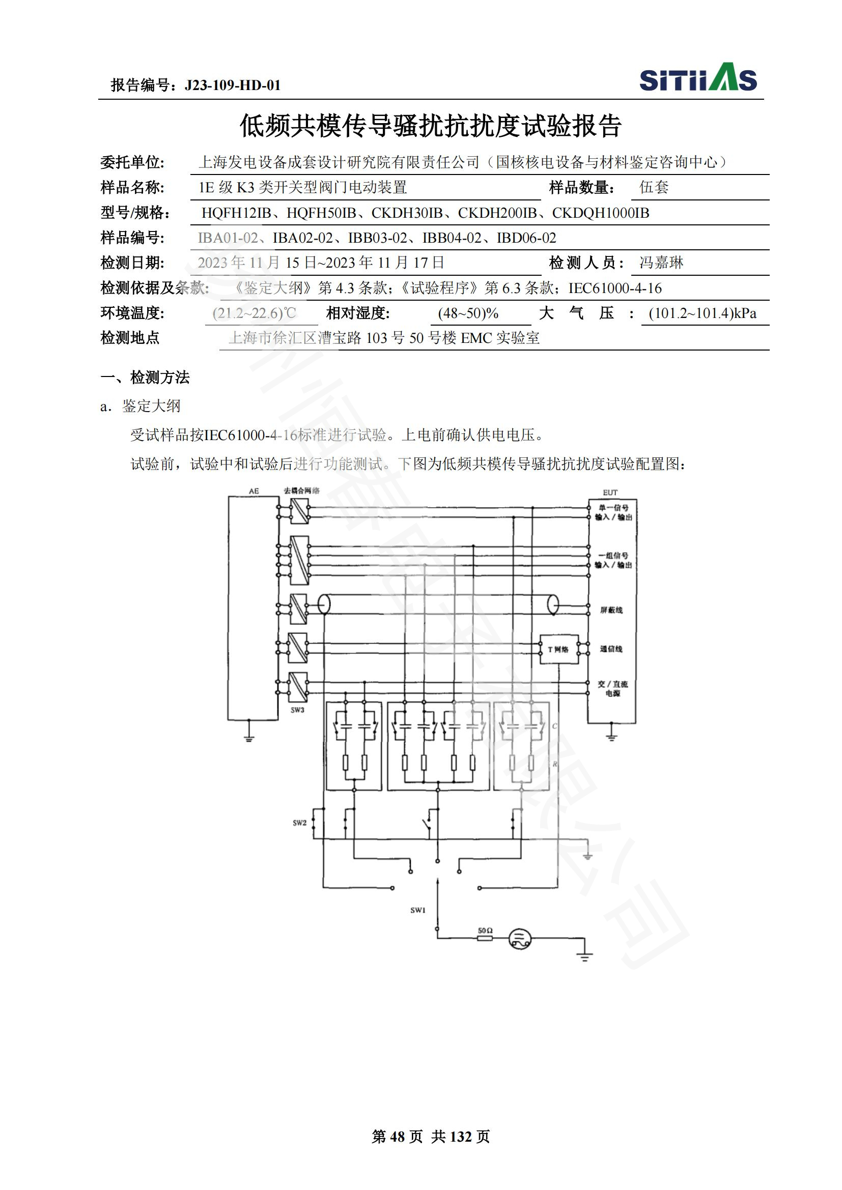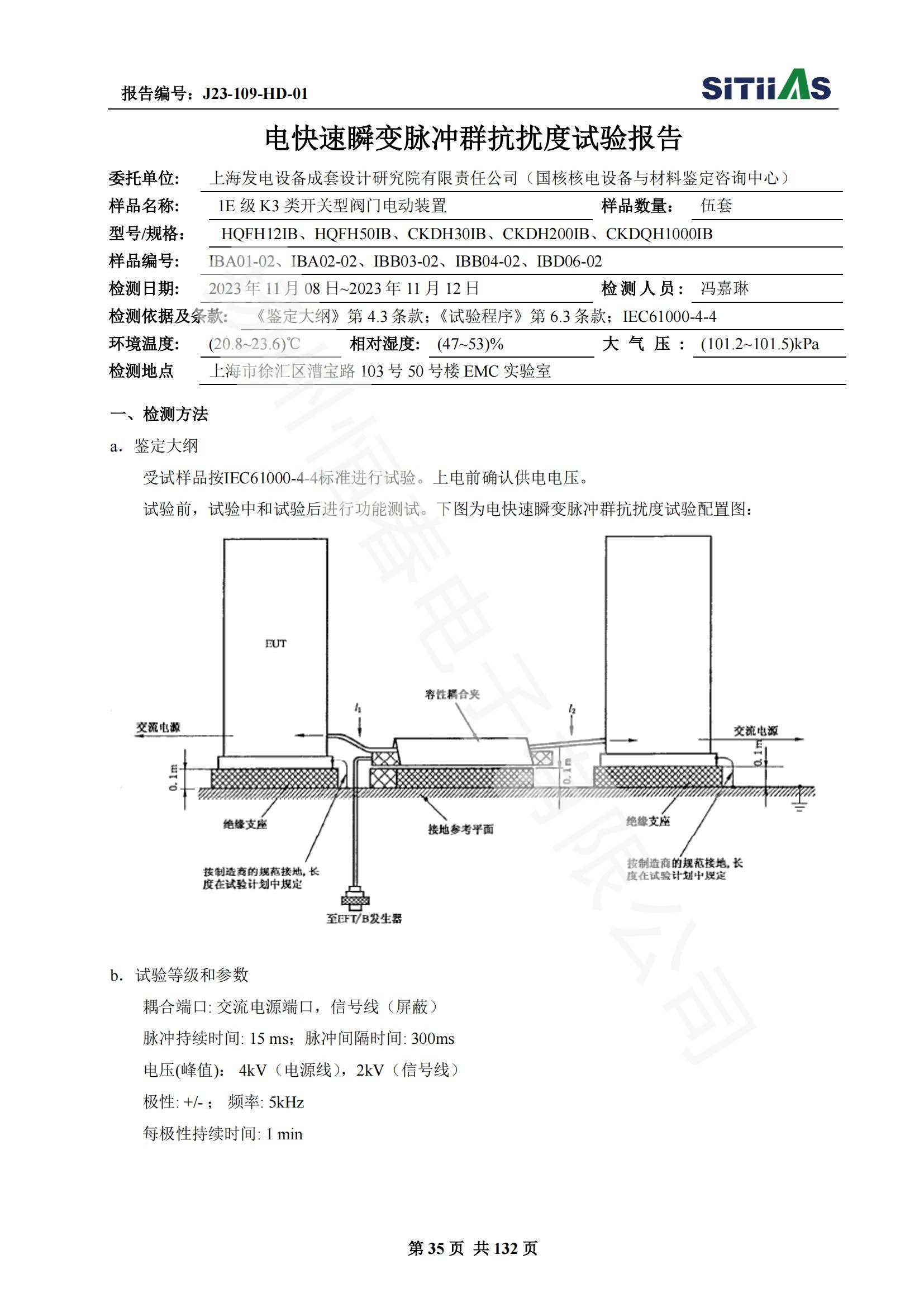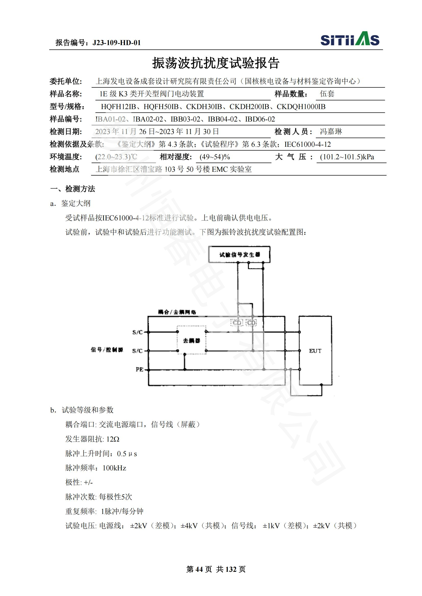 J23-109-HD-01 1E级K3类开关型阀门电动装置EMC试验报告
