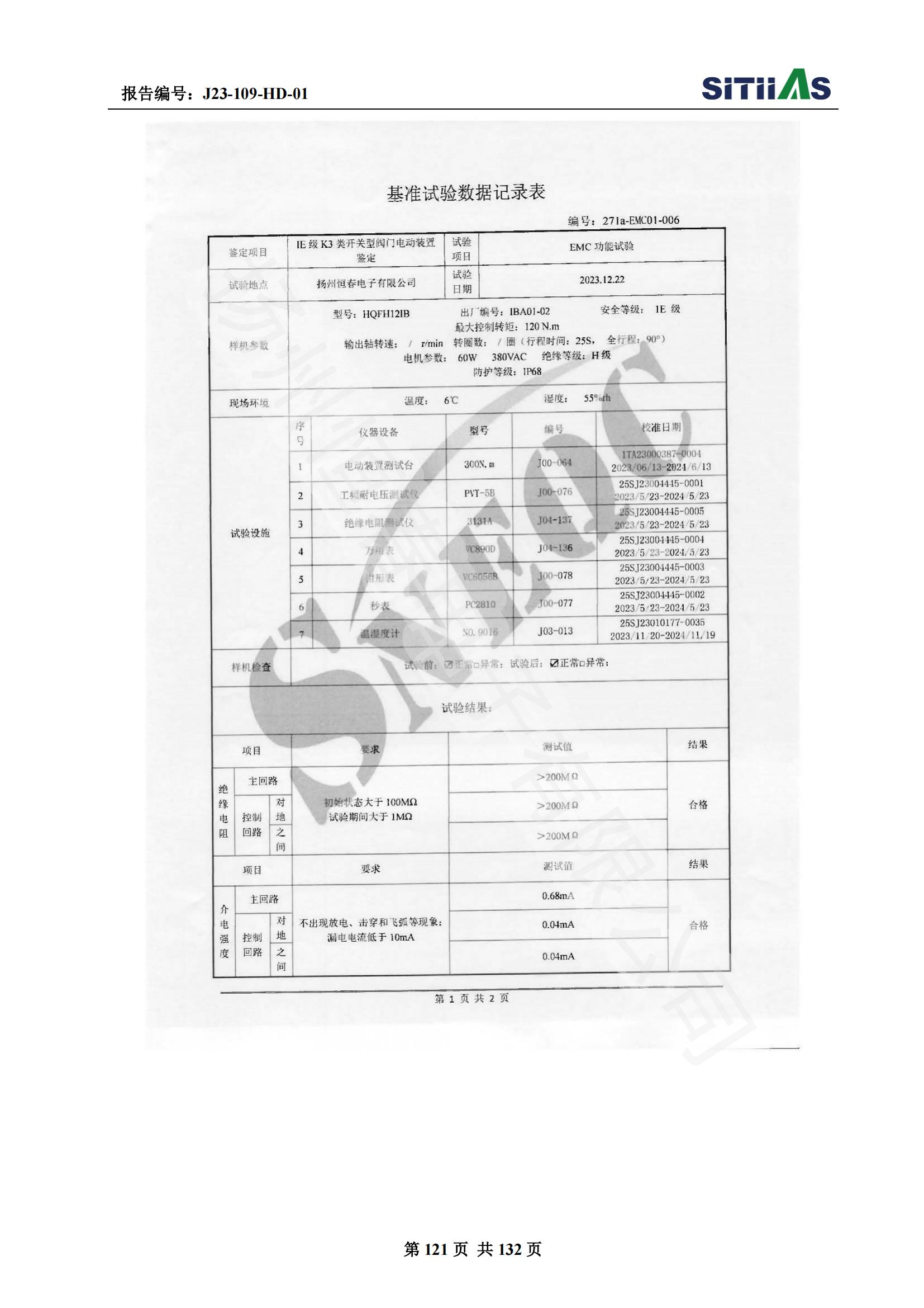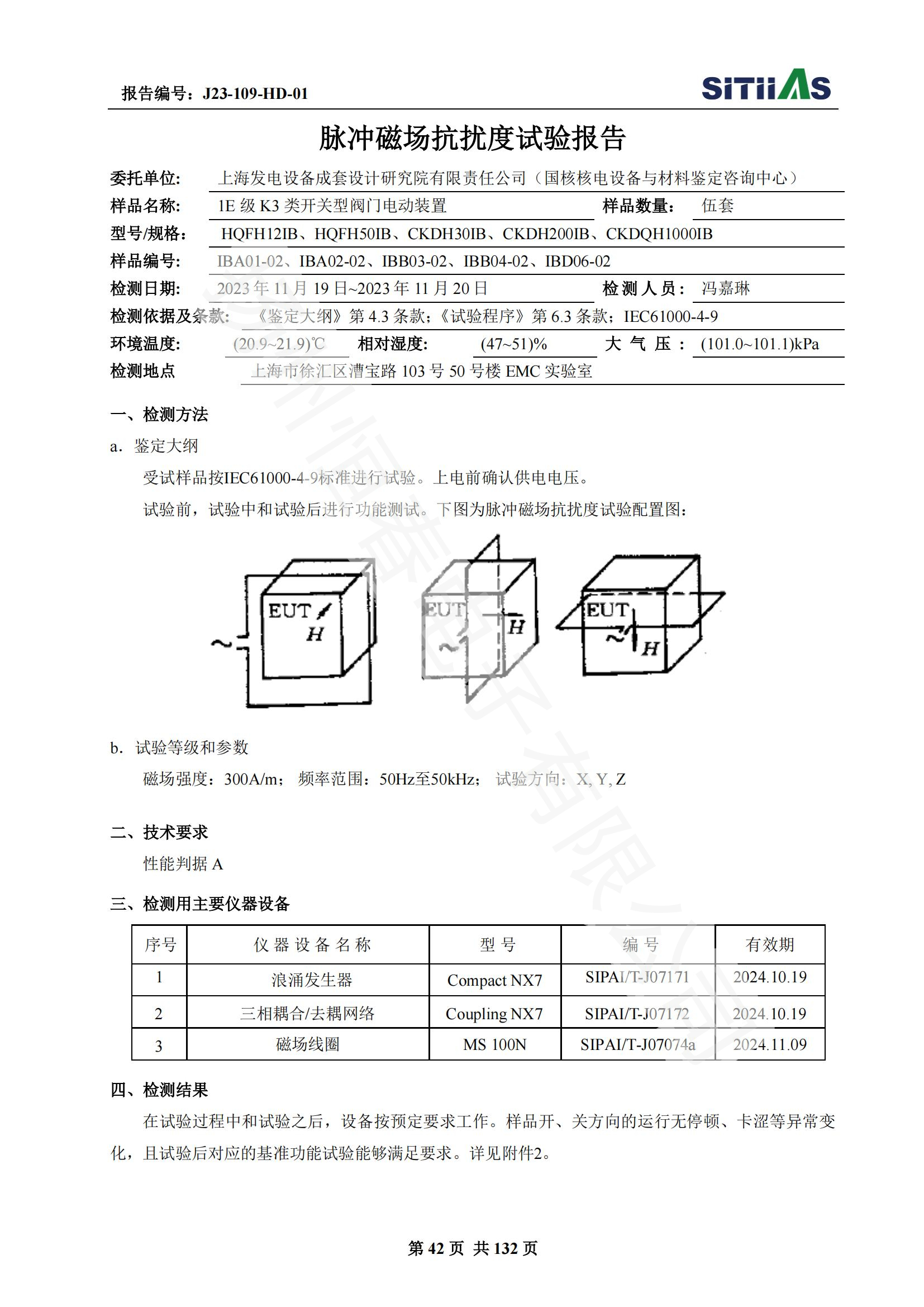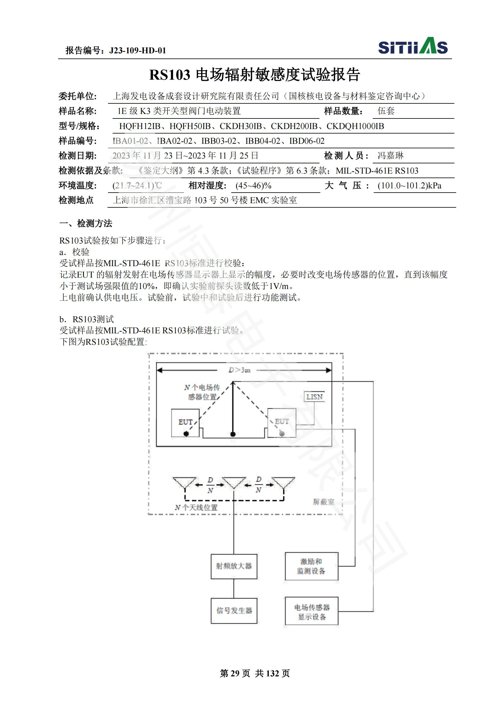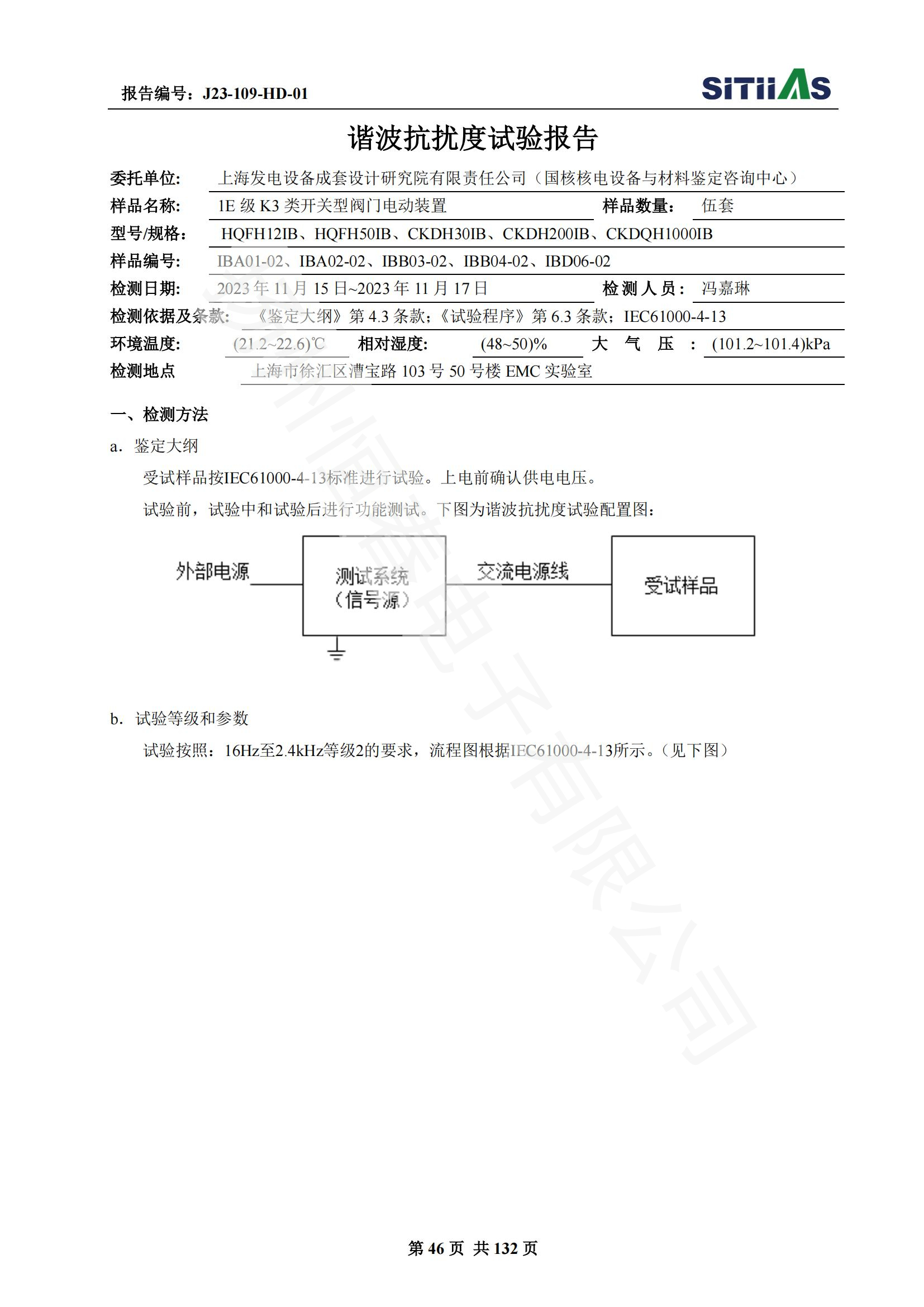 J23-109-HD-01 1E级K3类开关型阀门电动装置EMC试验报告