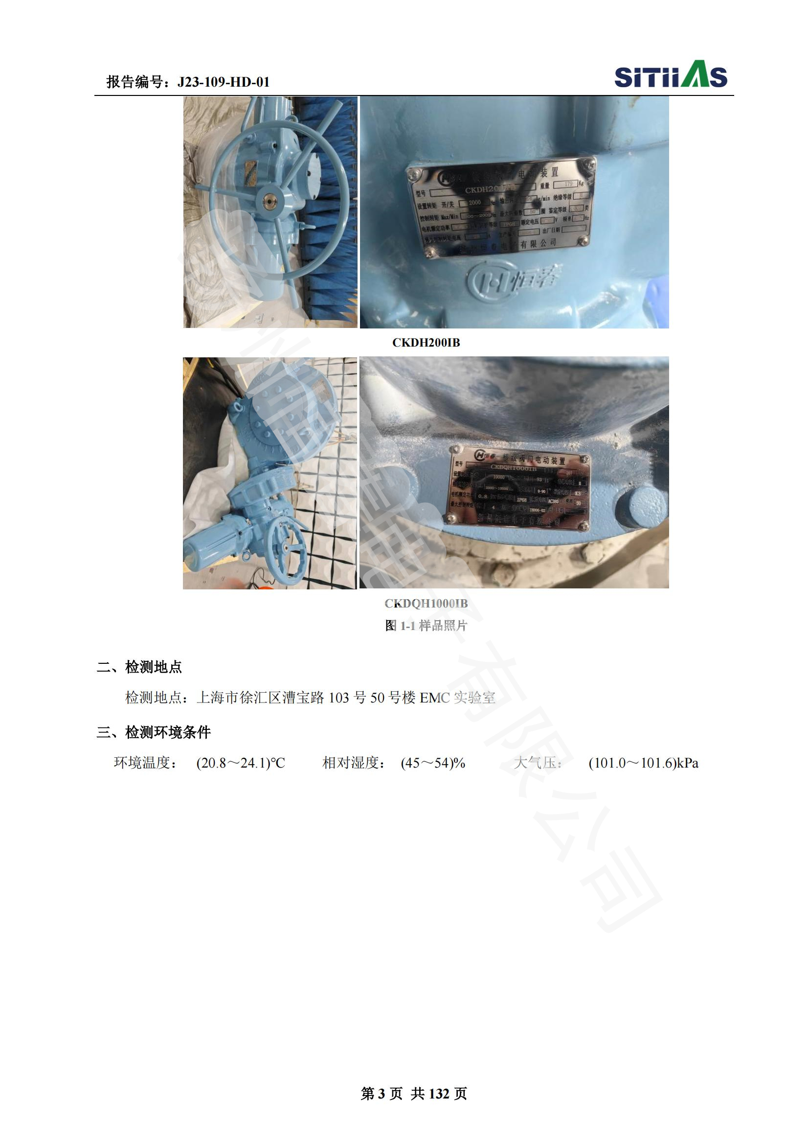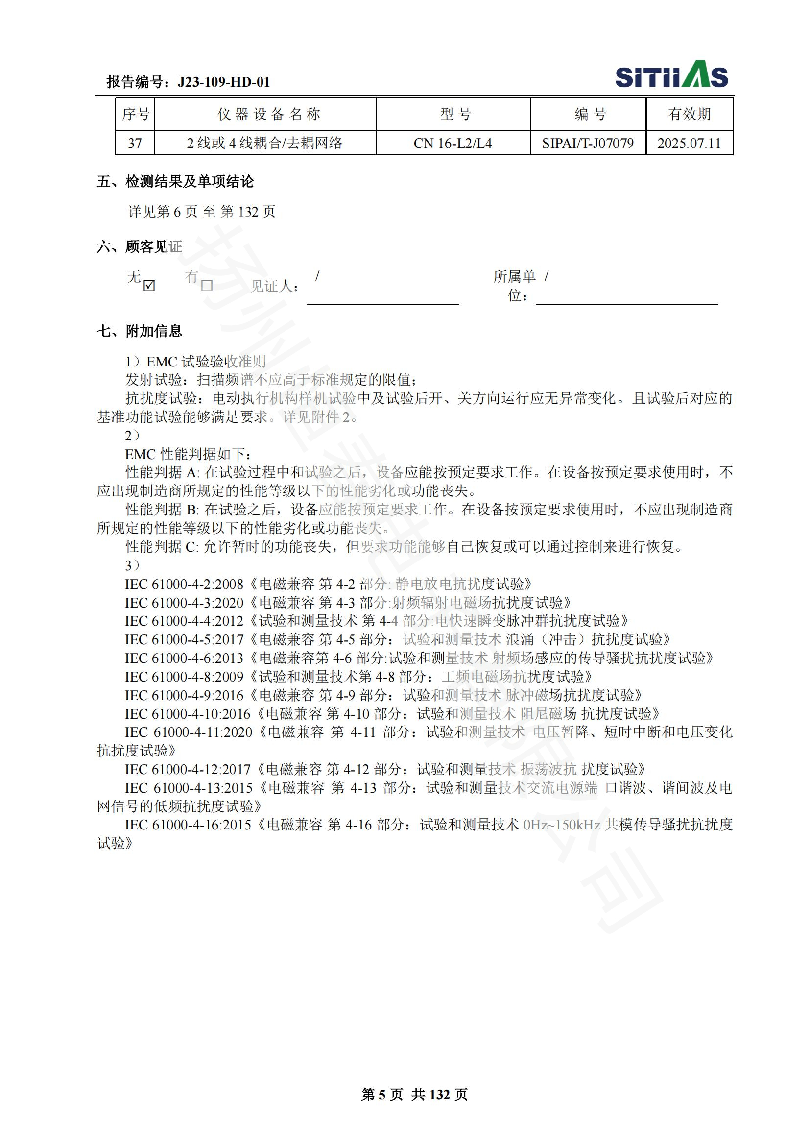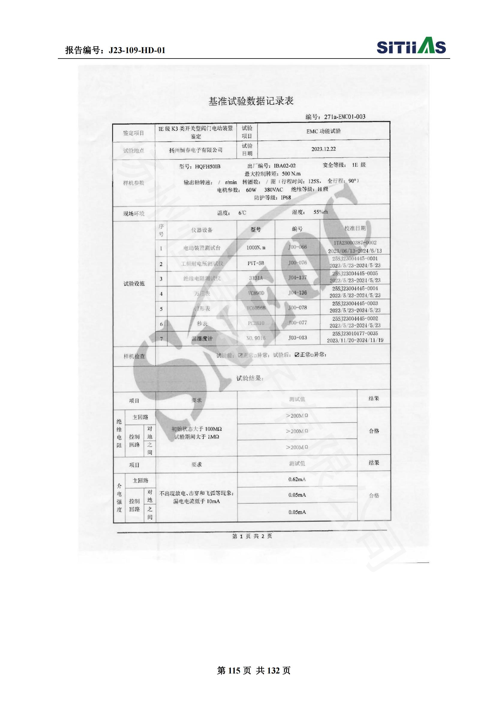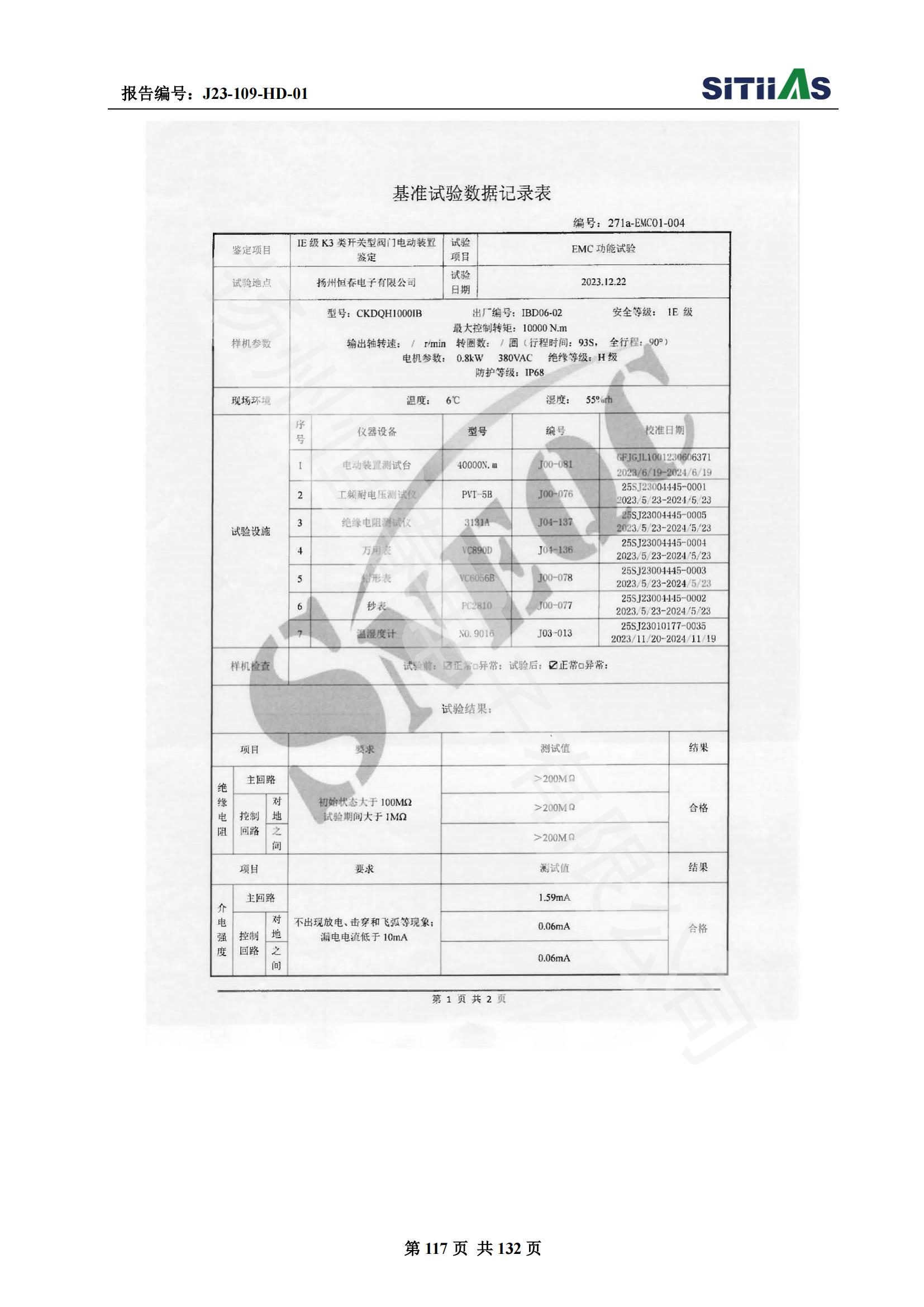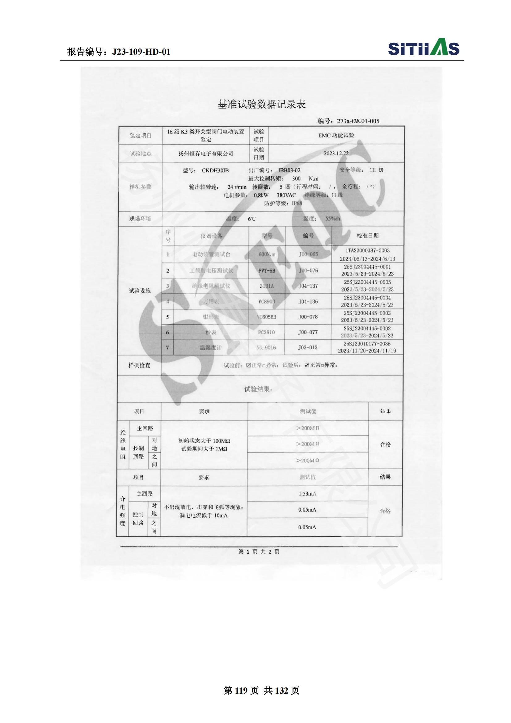 J23-109-HD-01 1E级K3类开关型阀门电动装置EMC试验报告
