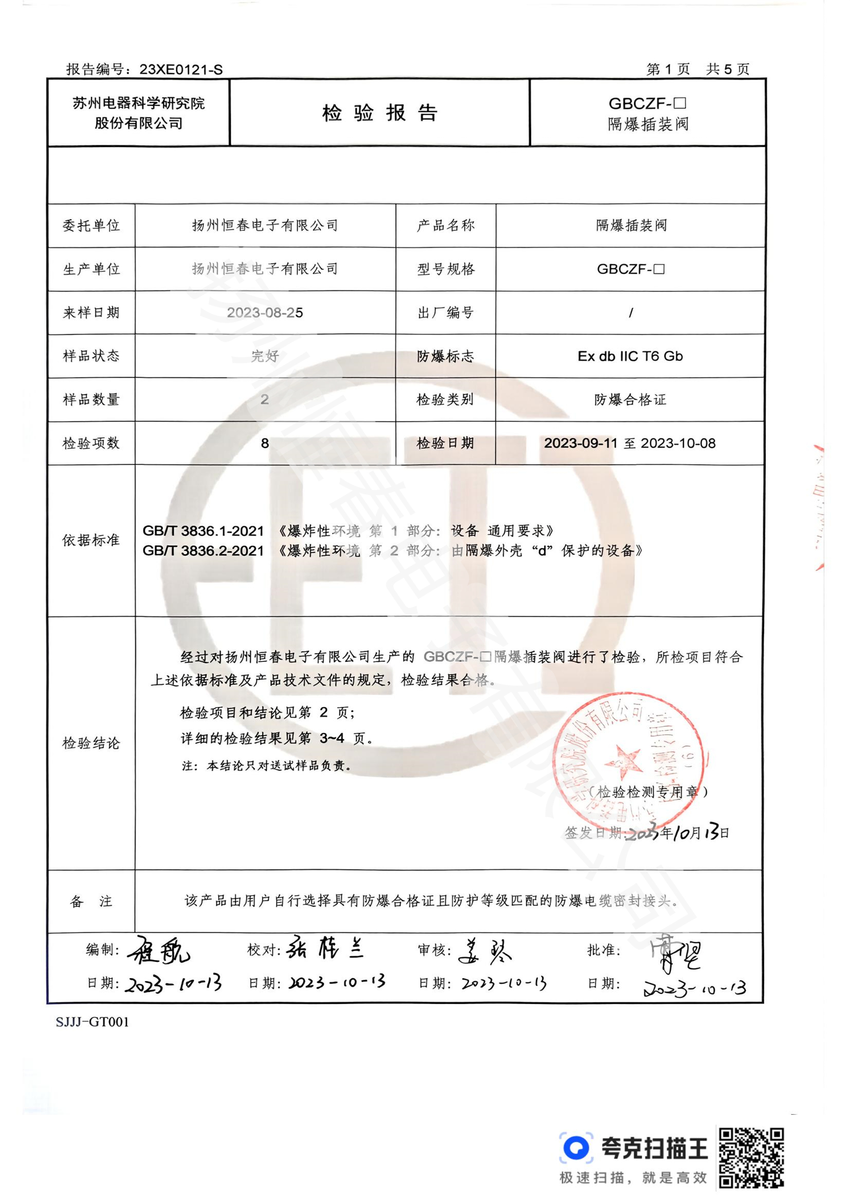 23XE0121-S 防爆合格证检测报告