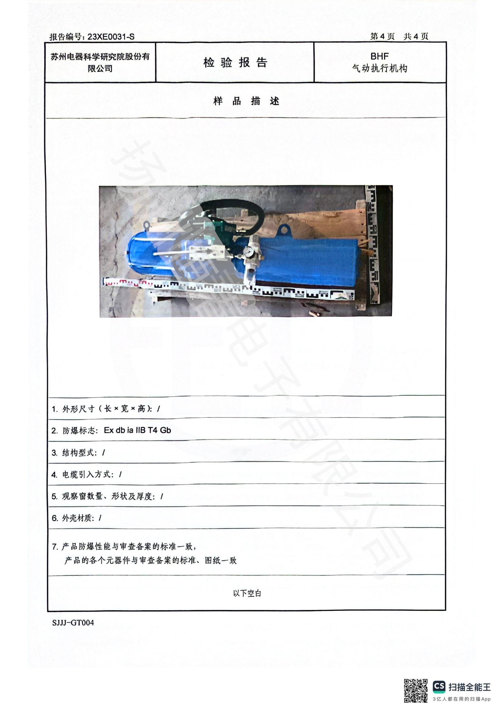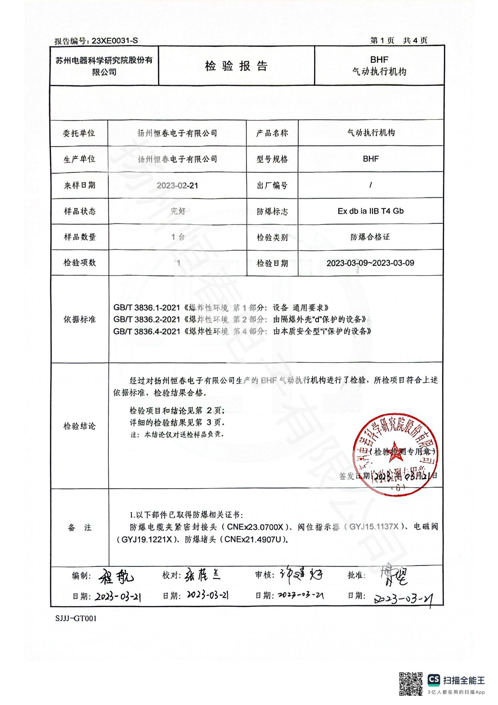 23XE0031-S BHF气动防爆合格证试验报告