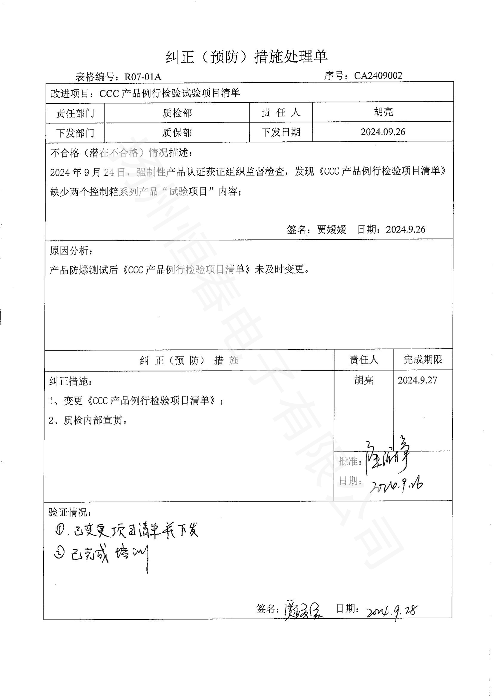 附件纠正措施