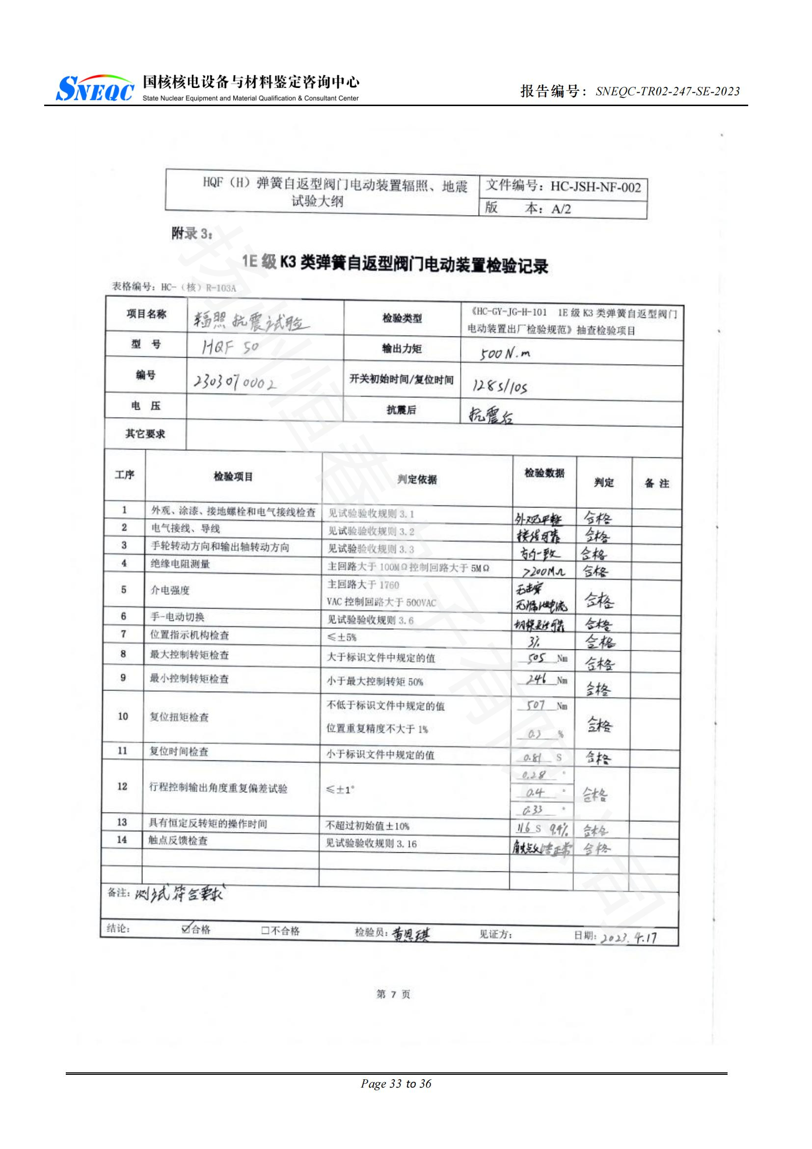 上一篇 SNEQC-TR01-330-RA-2024 CKDJA系列智能型角行程阀门电动装置辐照试验报告