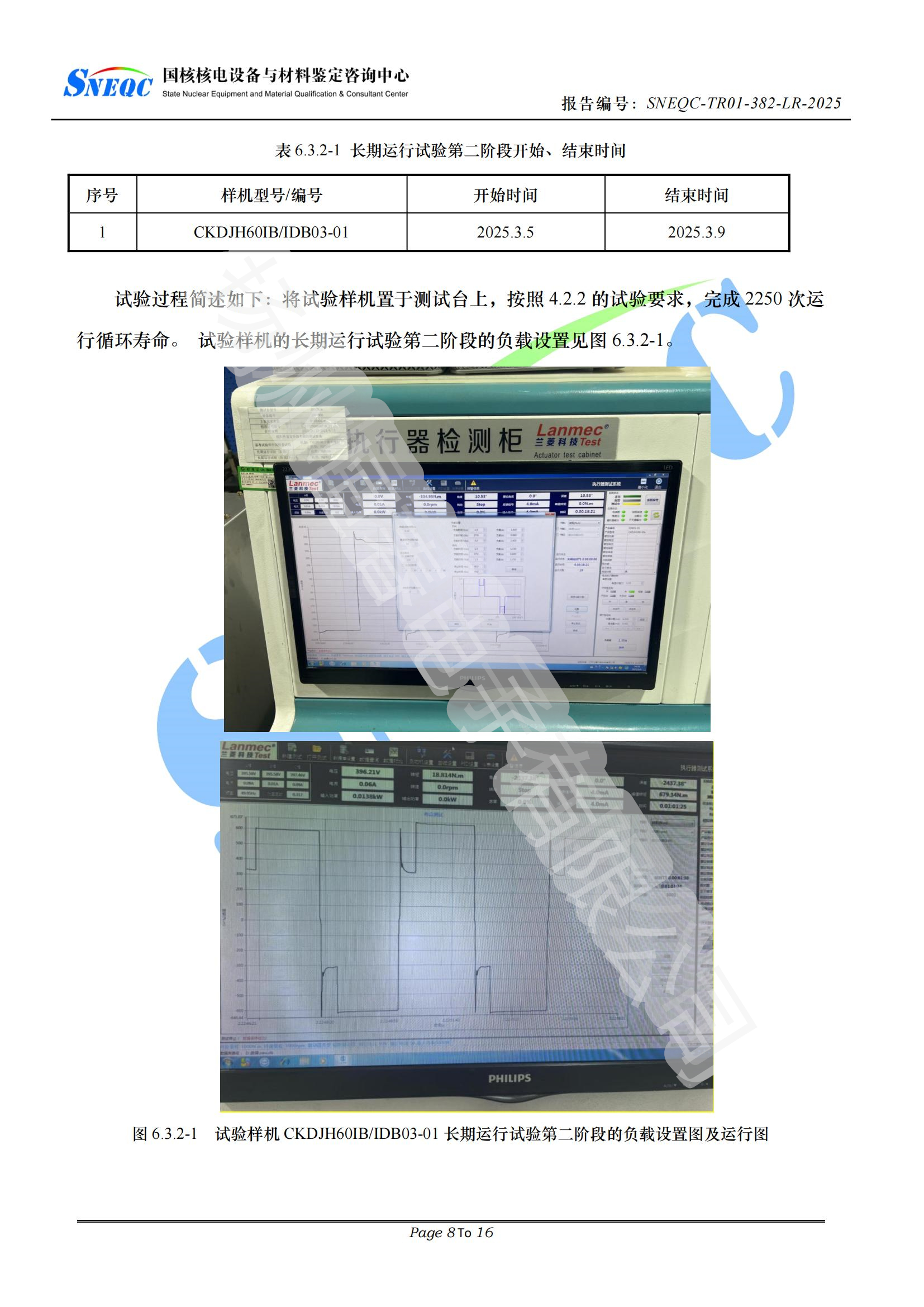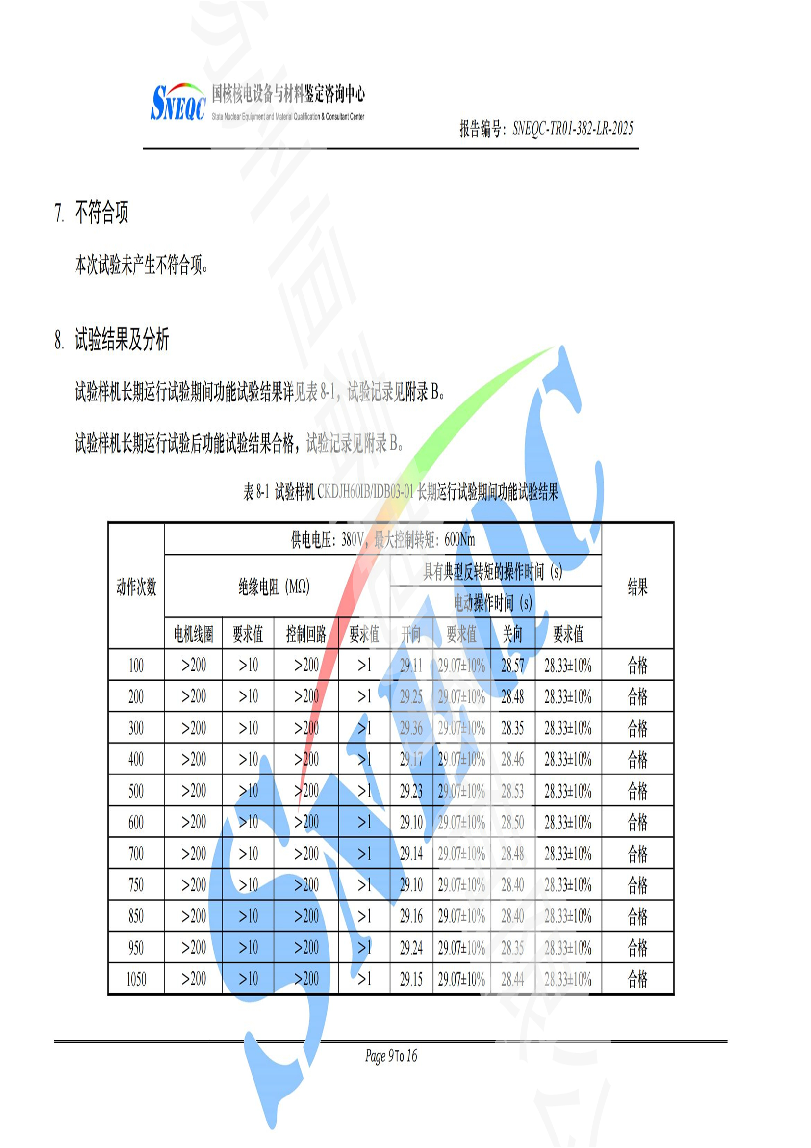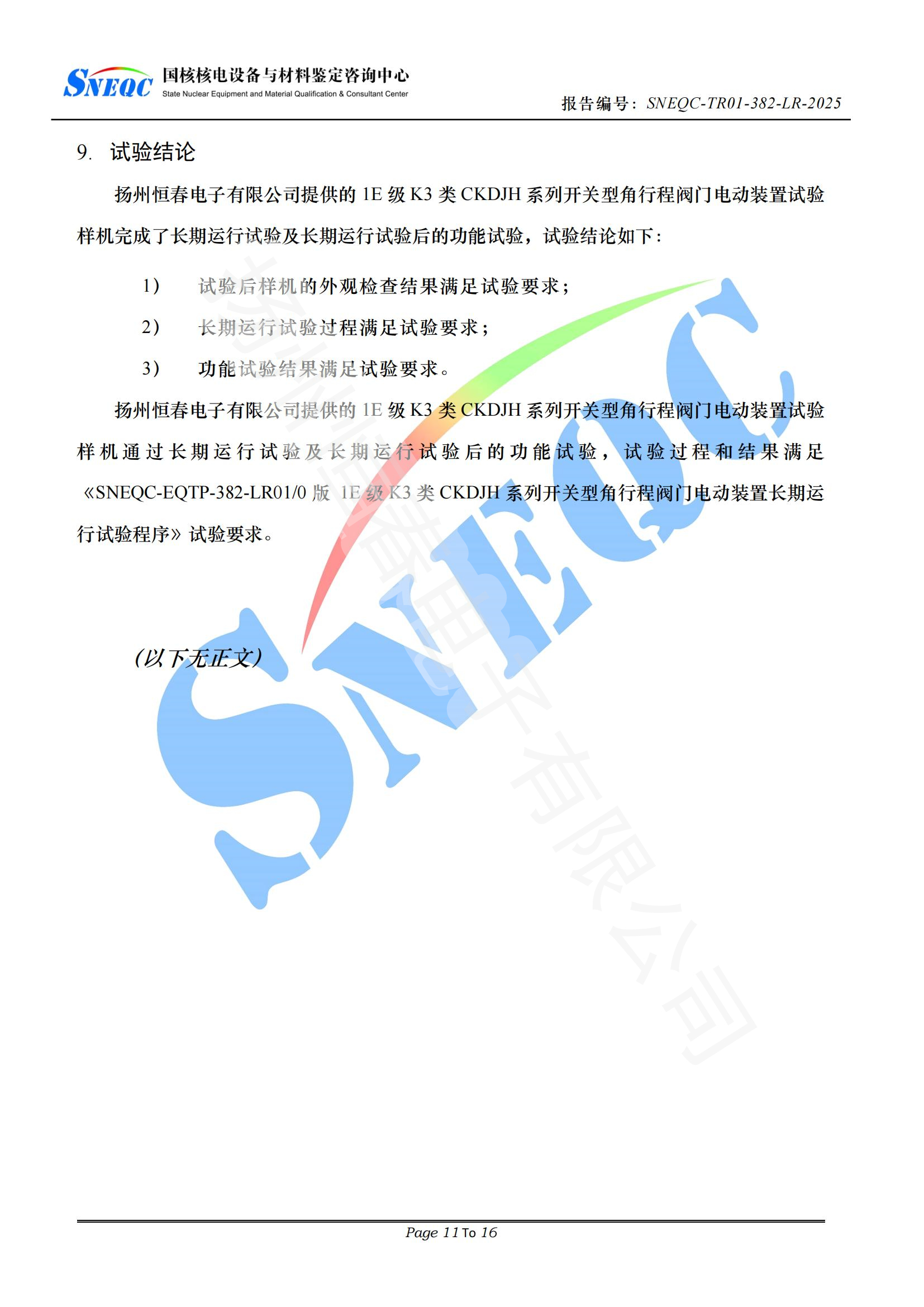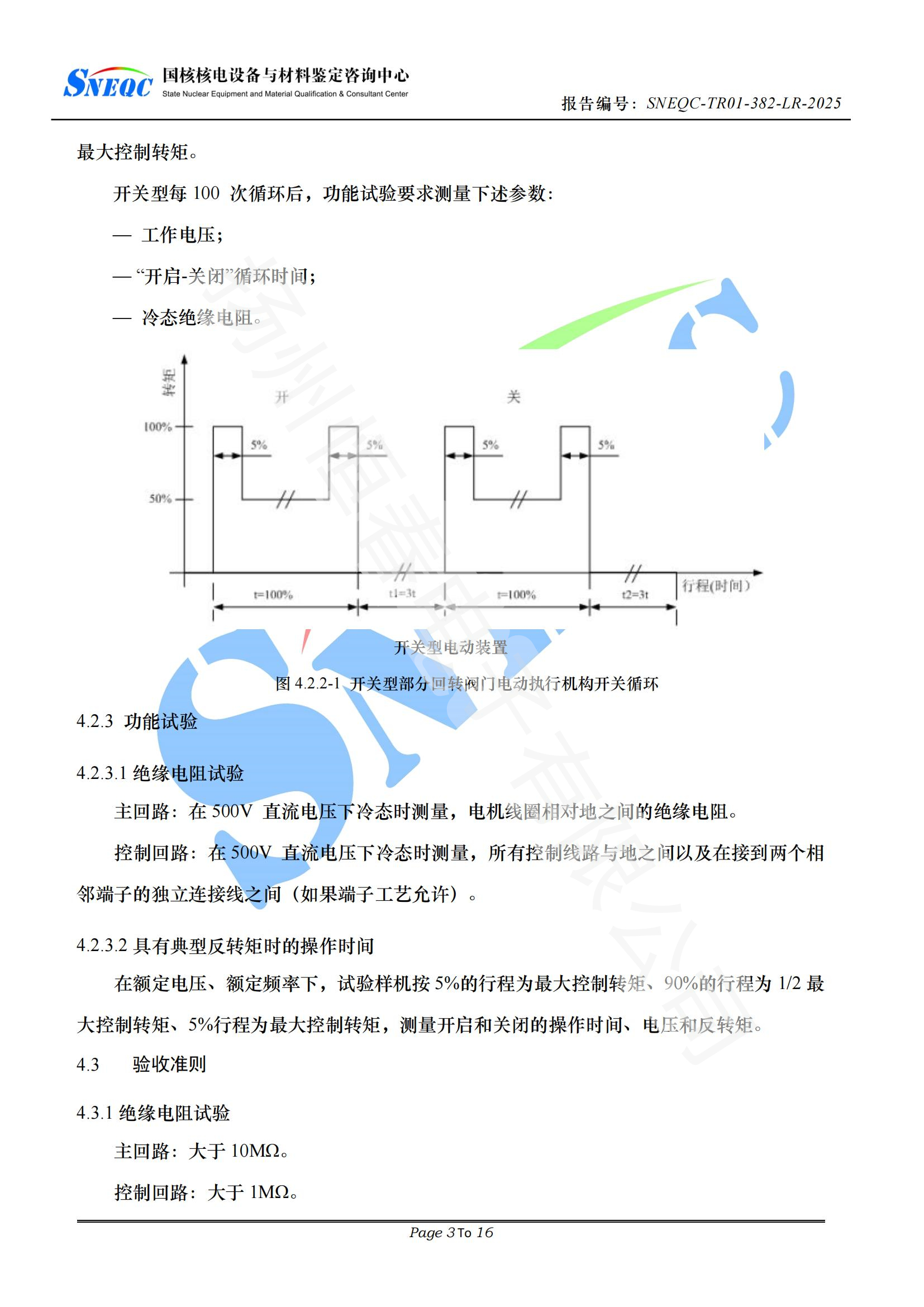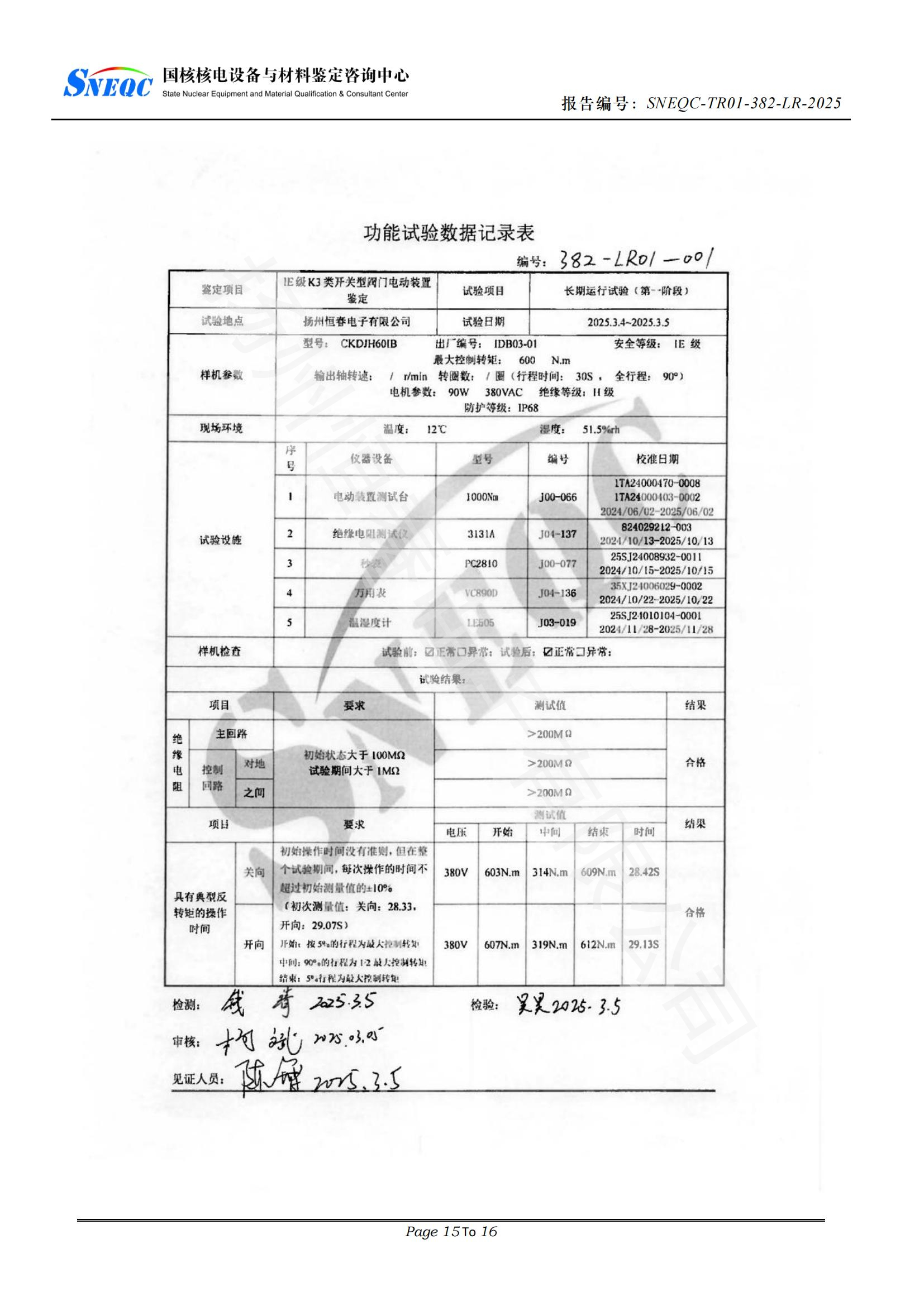 SNEQC-TR01-382-LR-2025 1E级K3类CKDJH系列开关型角行程阀门电动装置长期运行试验报告