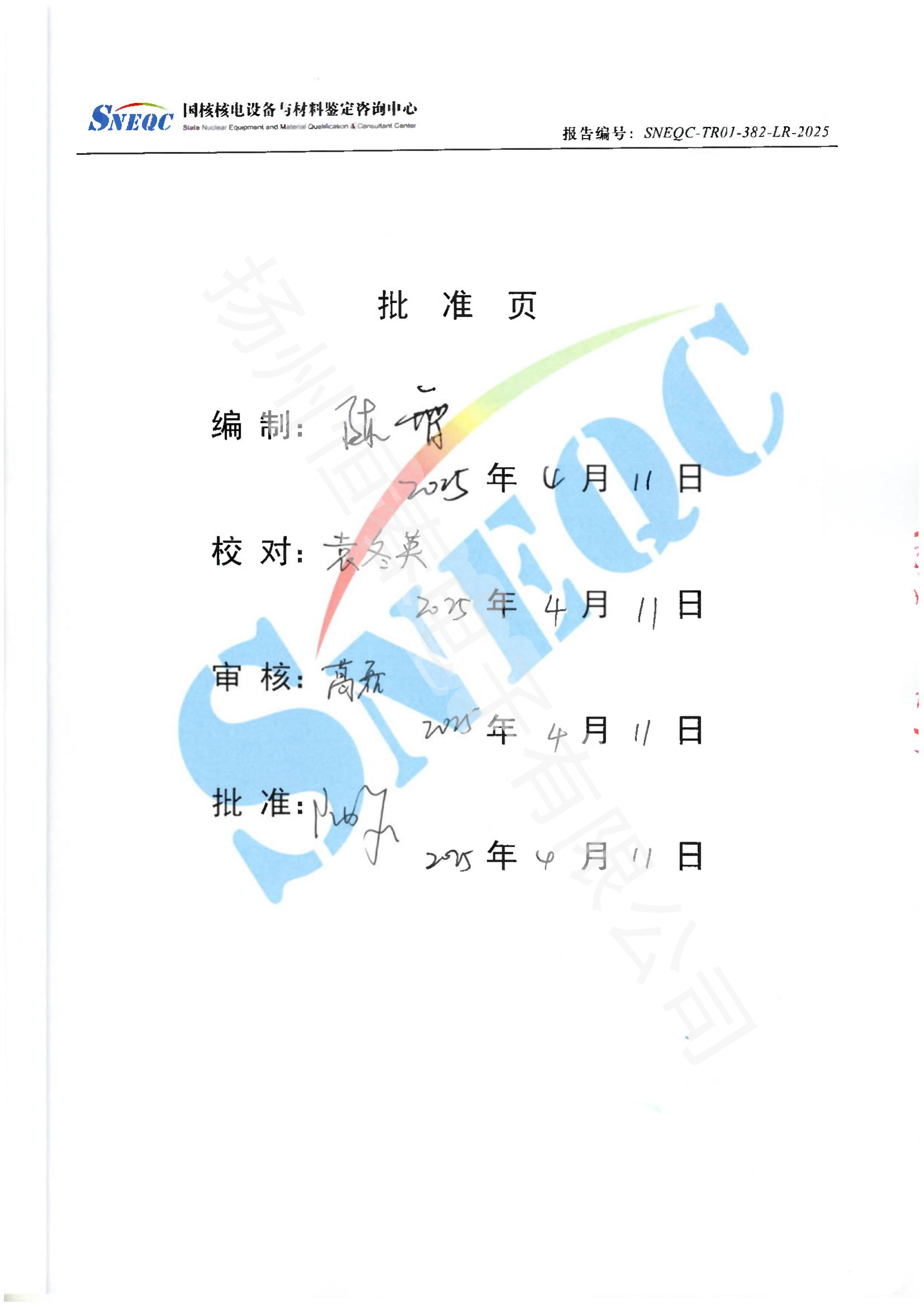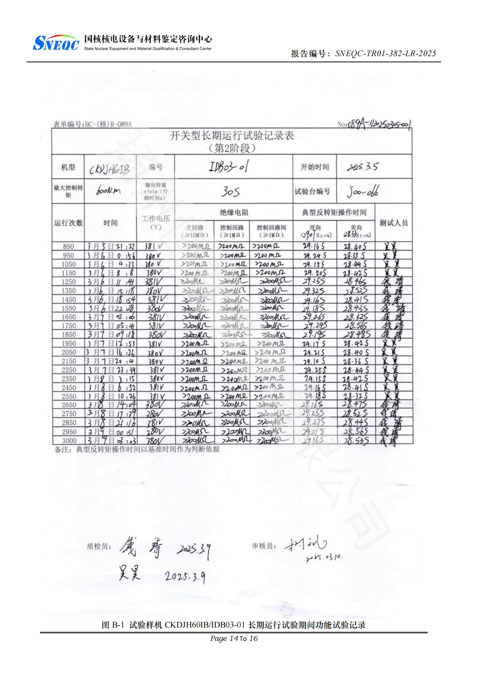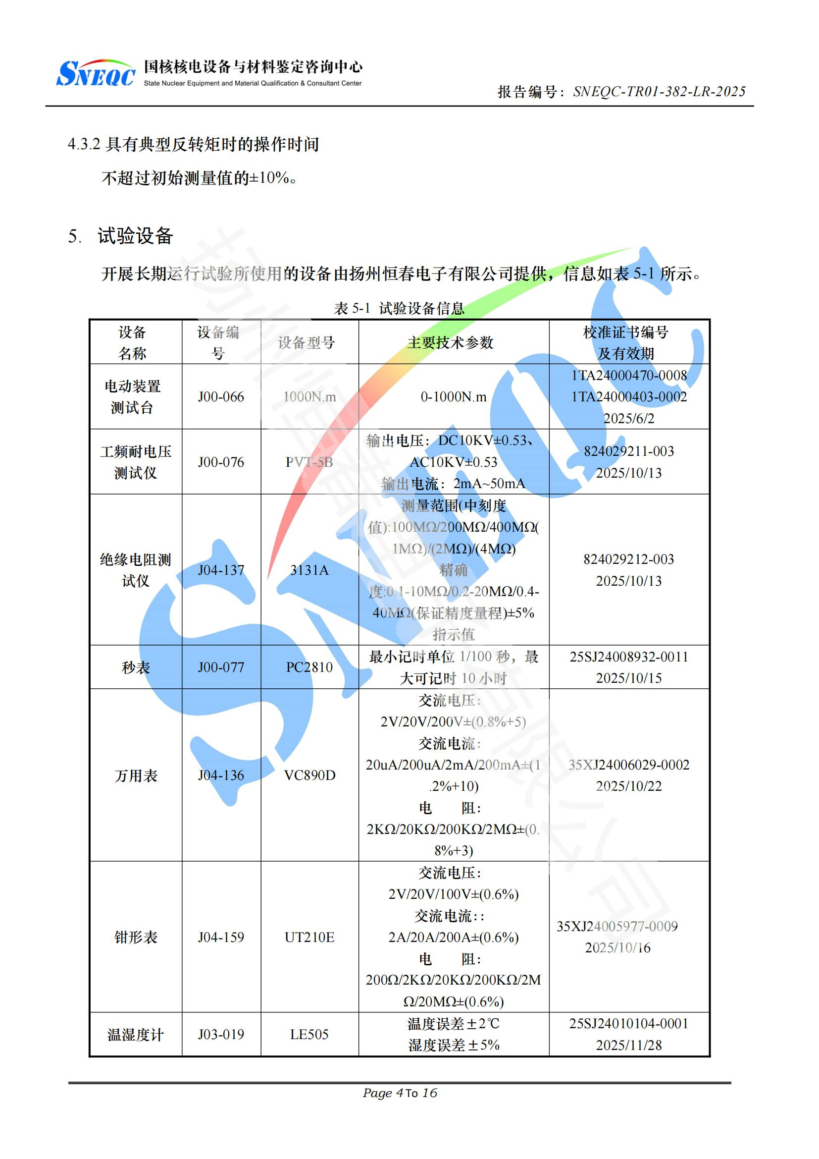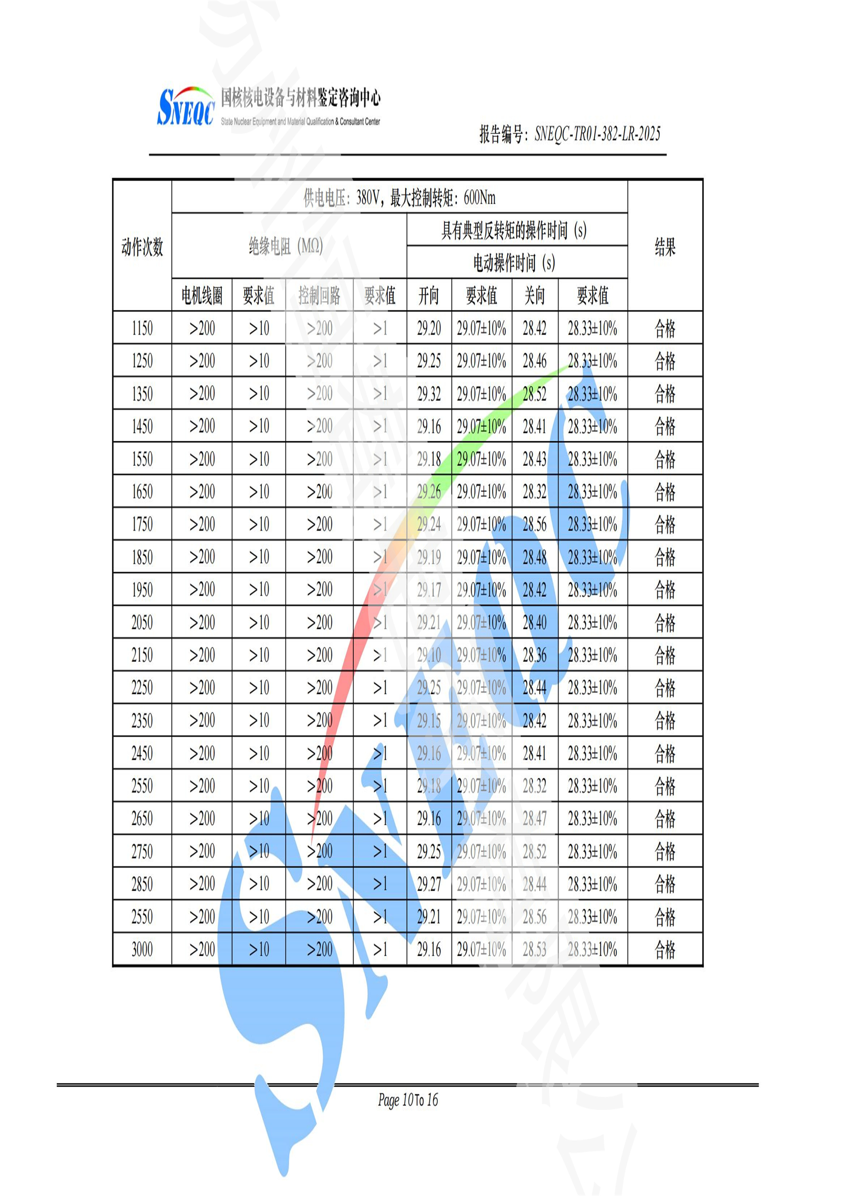 SNEQC-TR01-382-LR-2025 1E级K3类CKDJH系列开关型角行程阀门电动装置长期运行试验报告