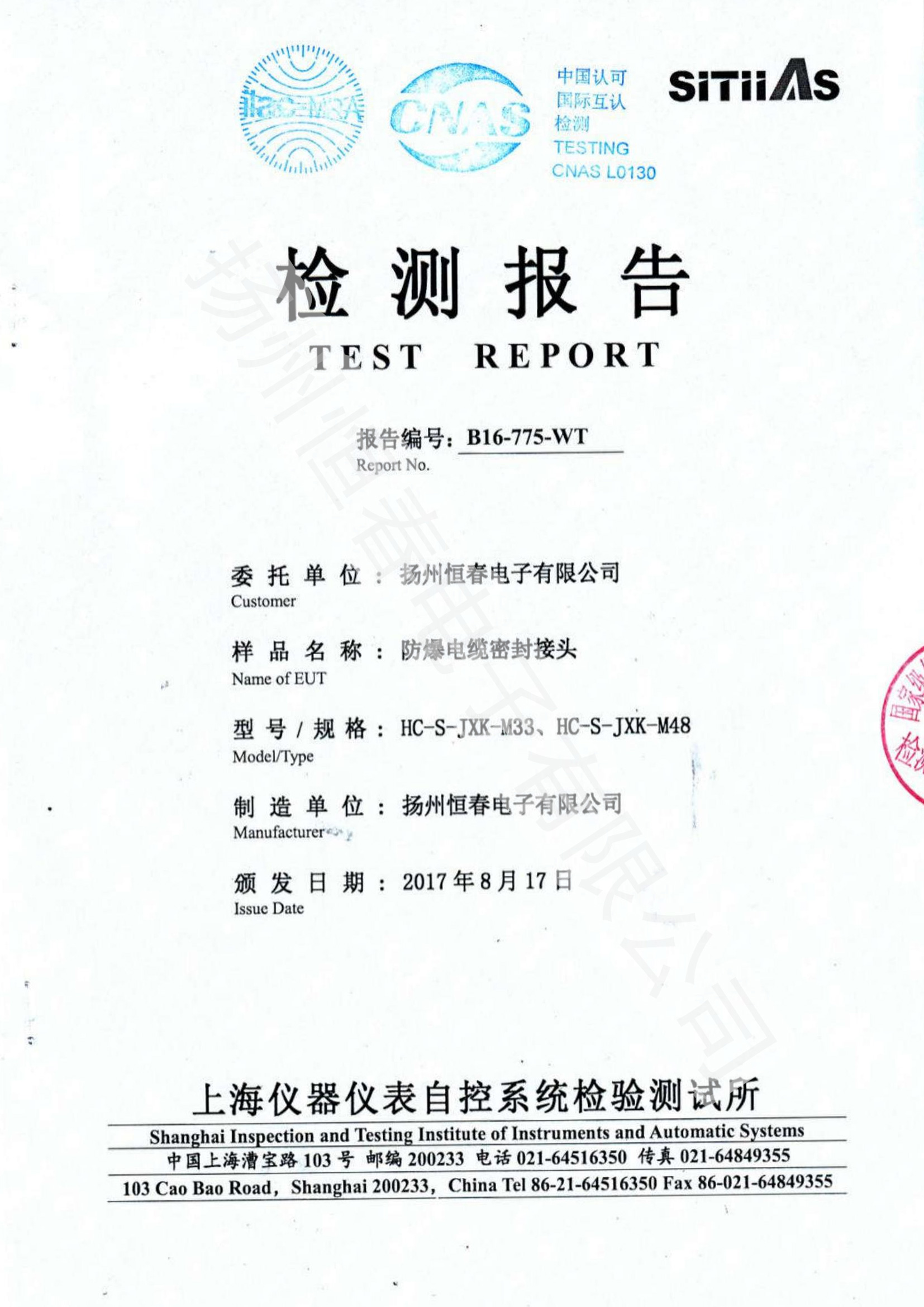 B16-775-WT 防爆电缆密封接头型式试验报告