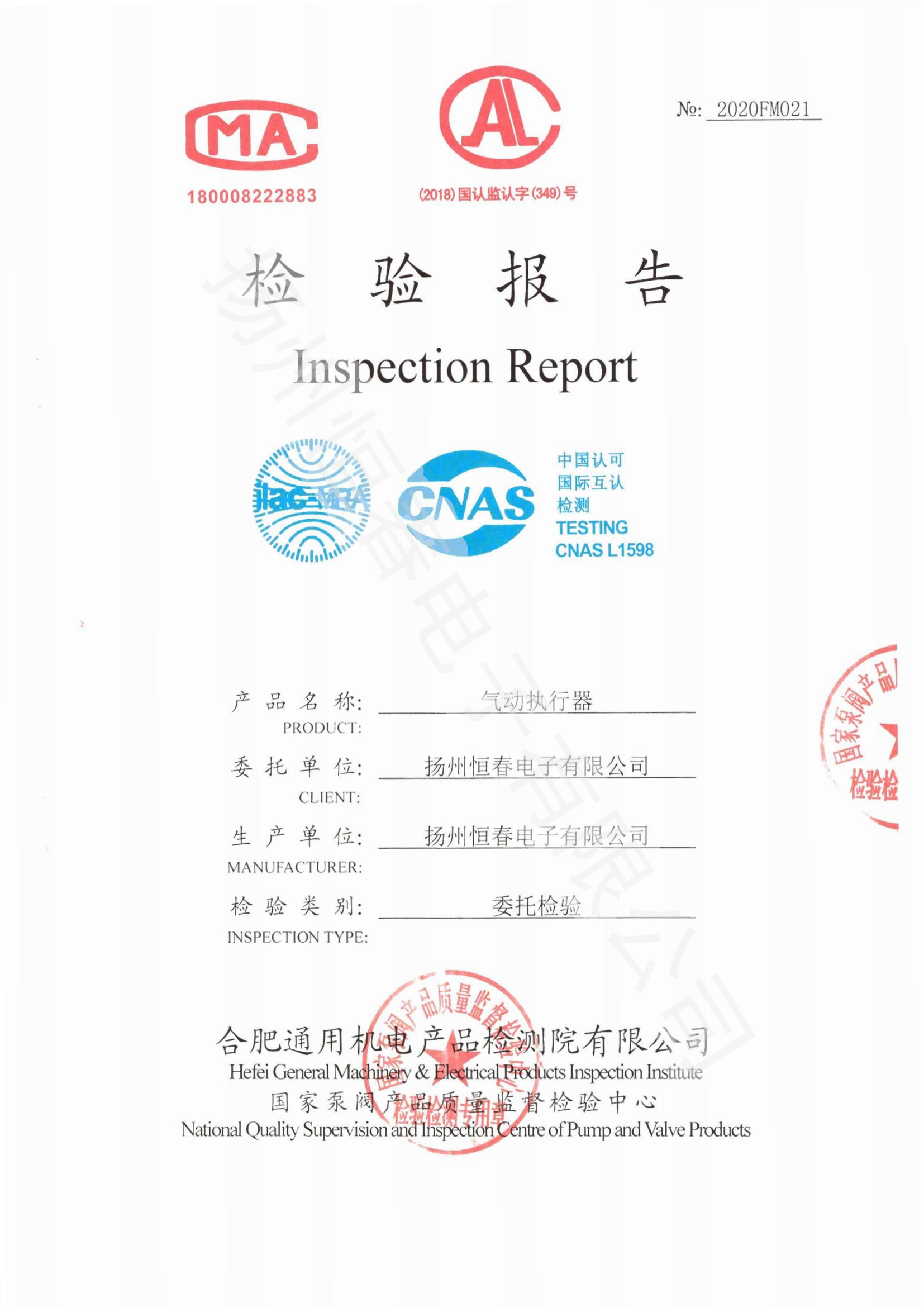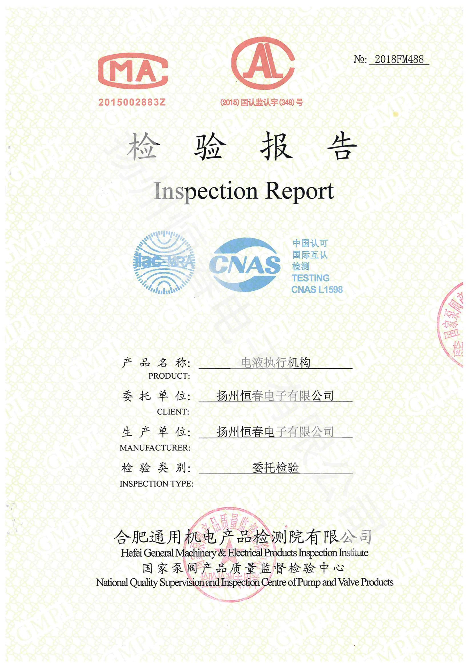 2018FM488 检测报告CKDY300-EX电液执行机构