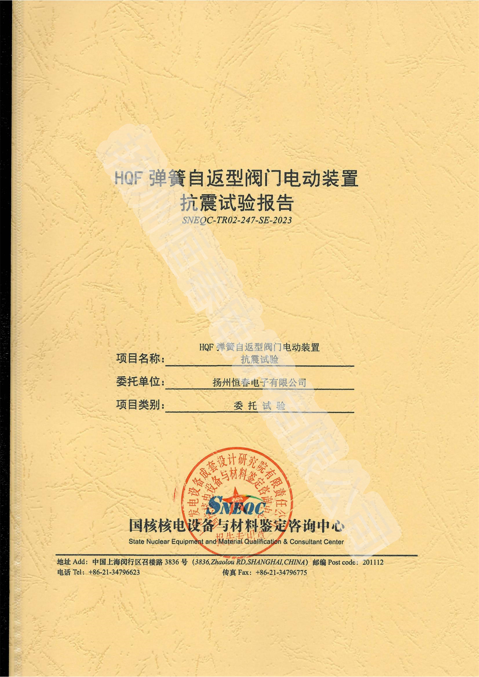 SNEQC-TR02-247-SE-2023 HQF弹簧自返型抗震试验报告